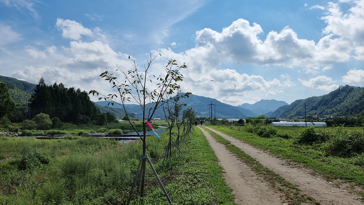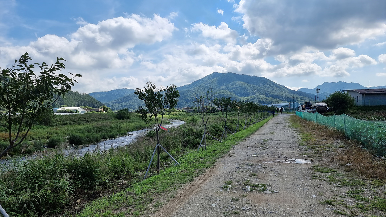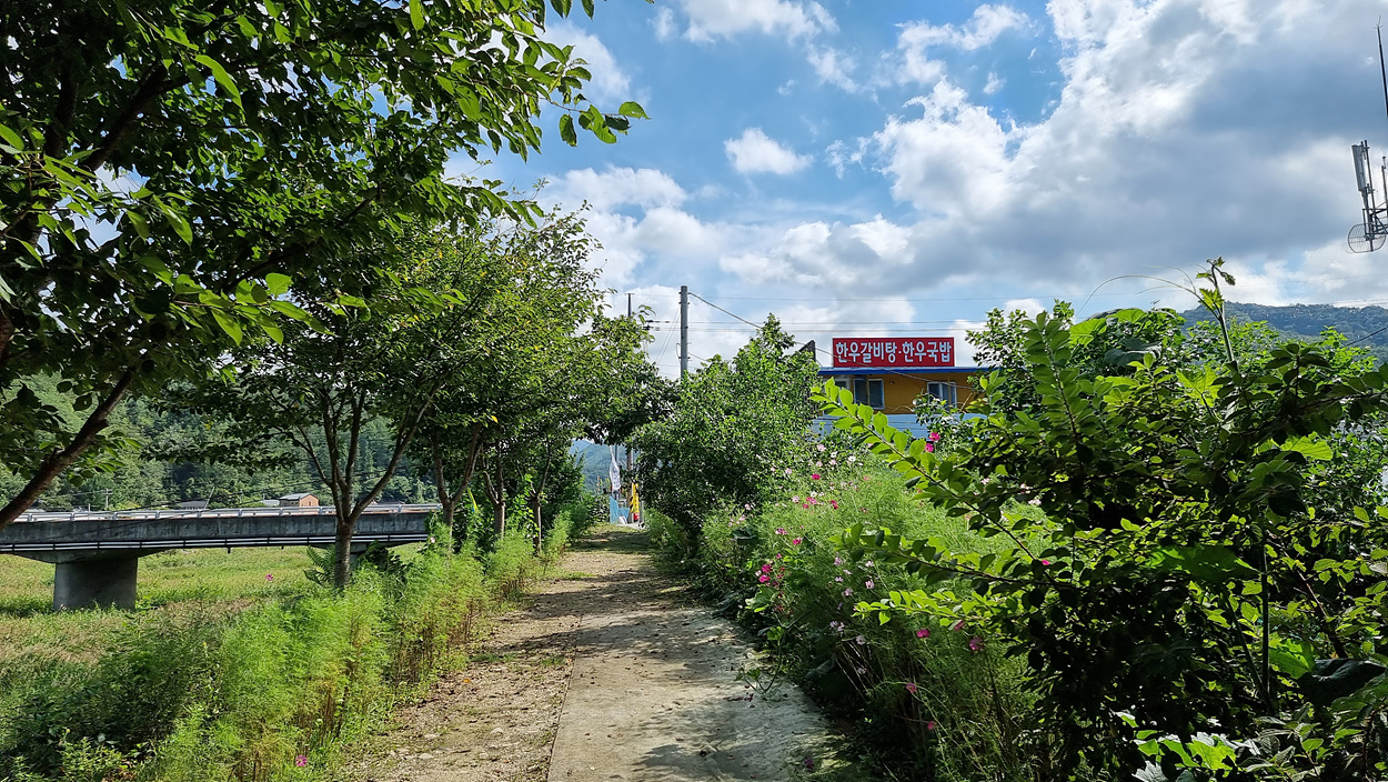 유치교를 지나 황둔천 둑방길을 가면서 보이는