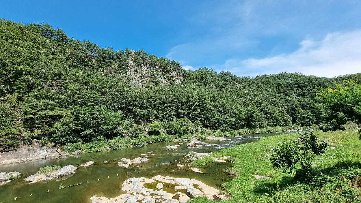 황둔에서 흘러 내려오는 항둔천은 주천강에 합수되여 흘러간다,
