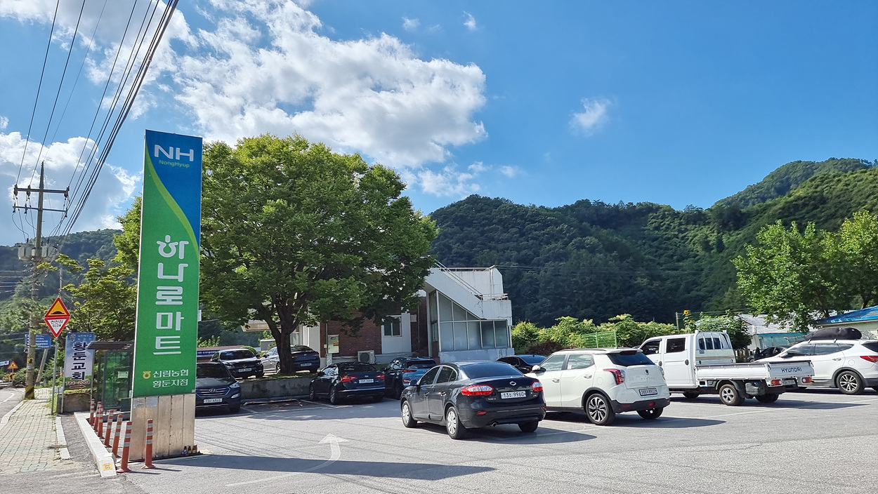 송계교 앞에서 오른쪽마을 하나로 마트로 간다,