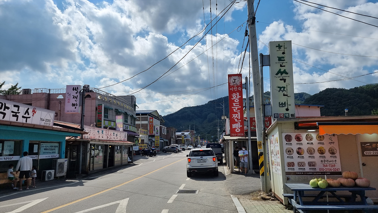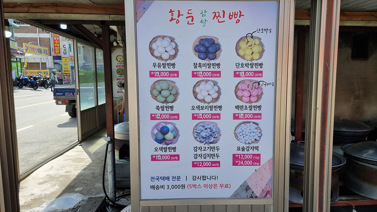 황둔 찹쌀 찐빵은 전국택배 전문이라는 간판도 보이는데