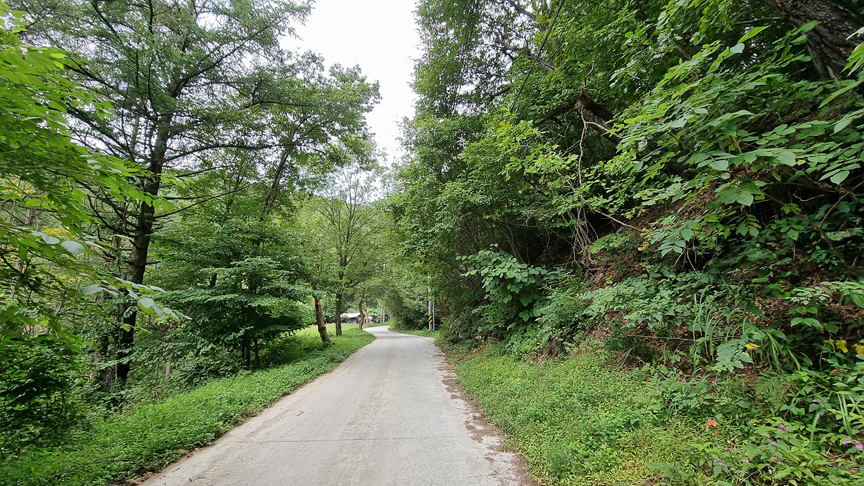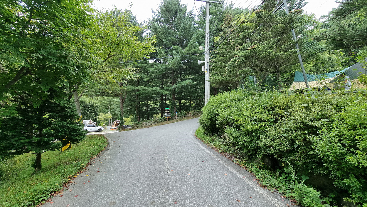 황둔에서 5,3km 아랫녁 피노키오 캠핑장에서 3km 정도를