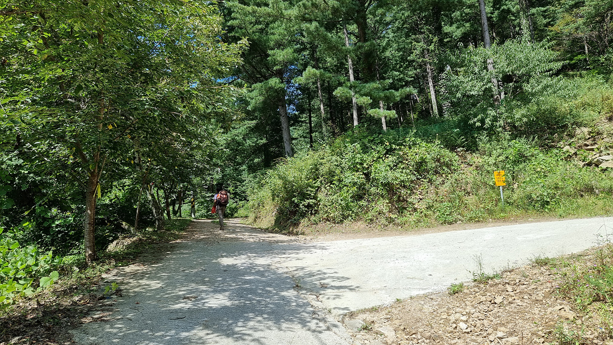 시작되는 콘크리트 포장길은 임도에도 계속해서 이어진다,