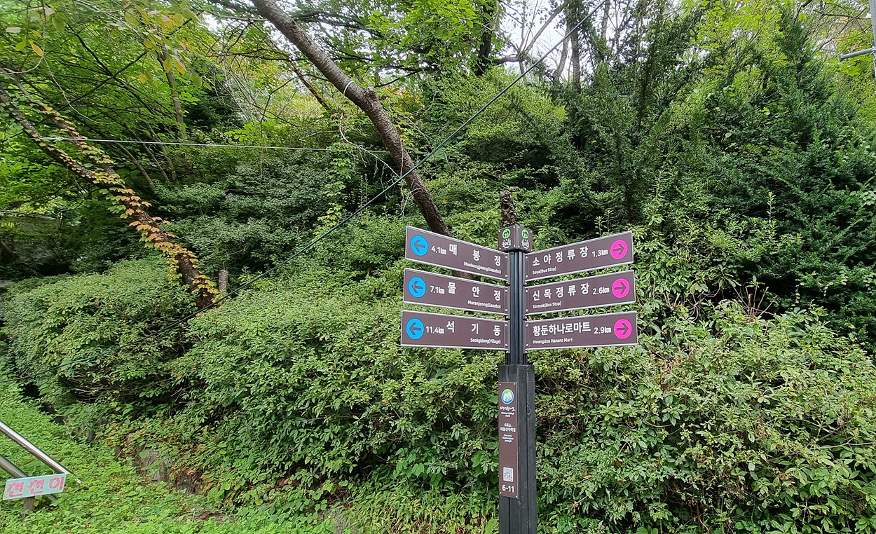황둔하나로 마트와 6코스 종점인 석기동까지 중간 지점으로