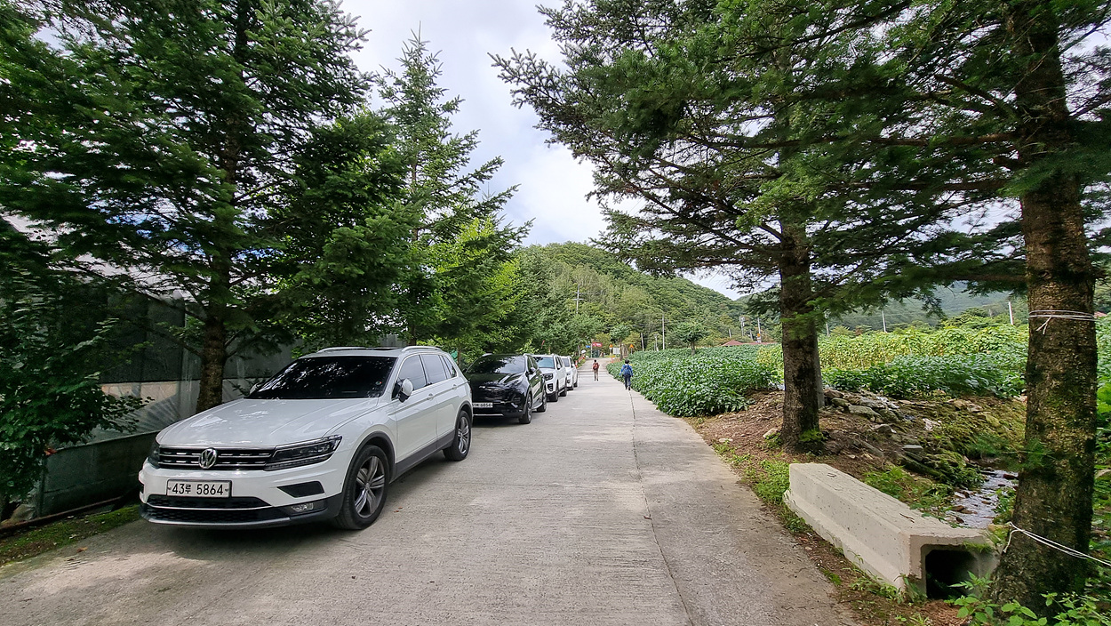 콘크리트 포장도로를 따라서 들어간다,