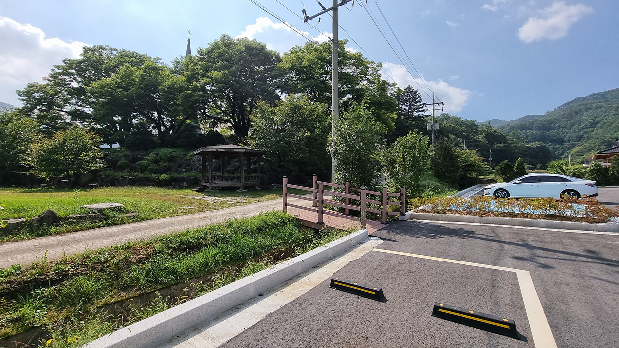 용소막성당 주차장에서 용소막 성당으로 들어간다,