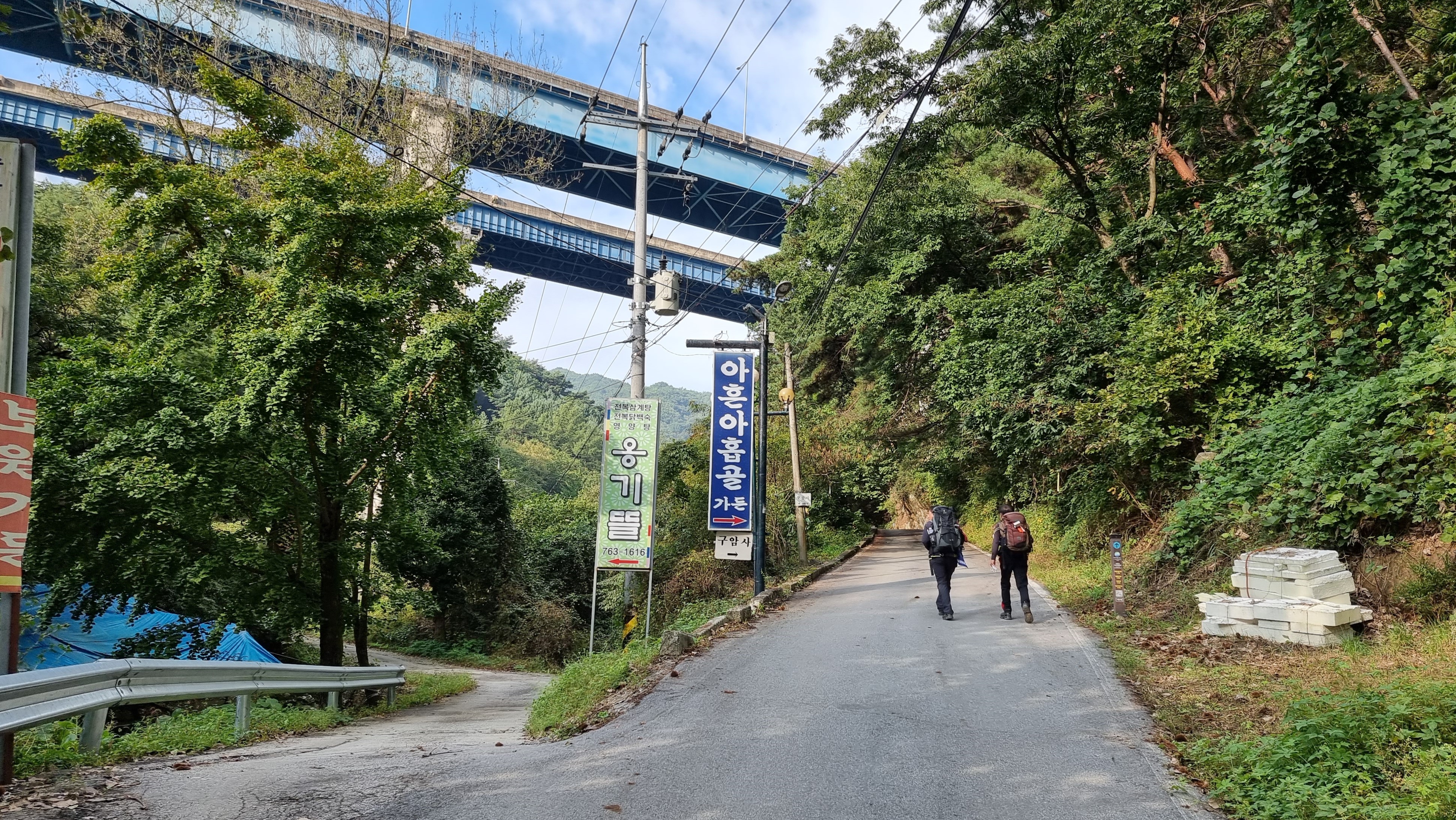 옹기뜰과 아흔아홉골가든 간판이 있는 곳도 지나서