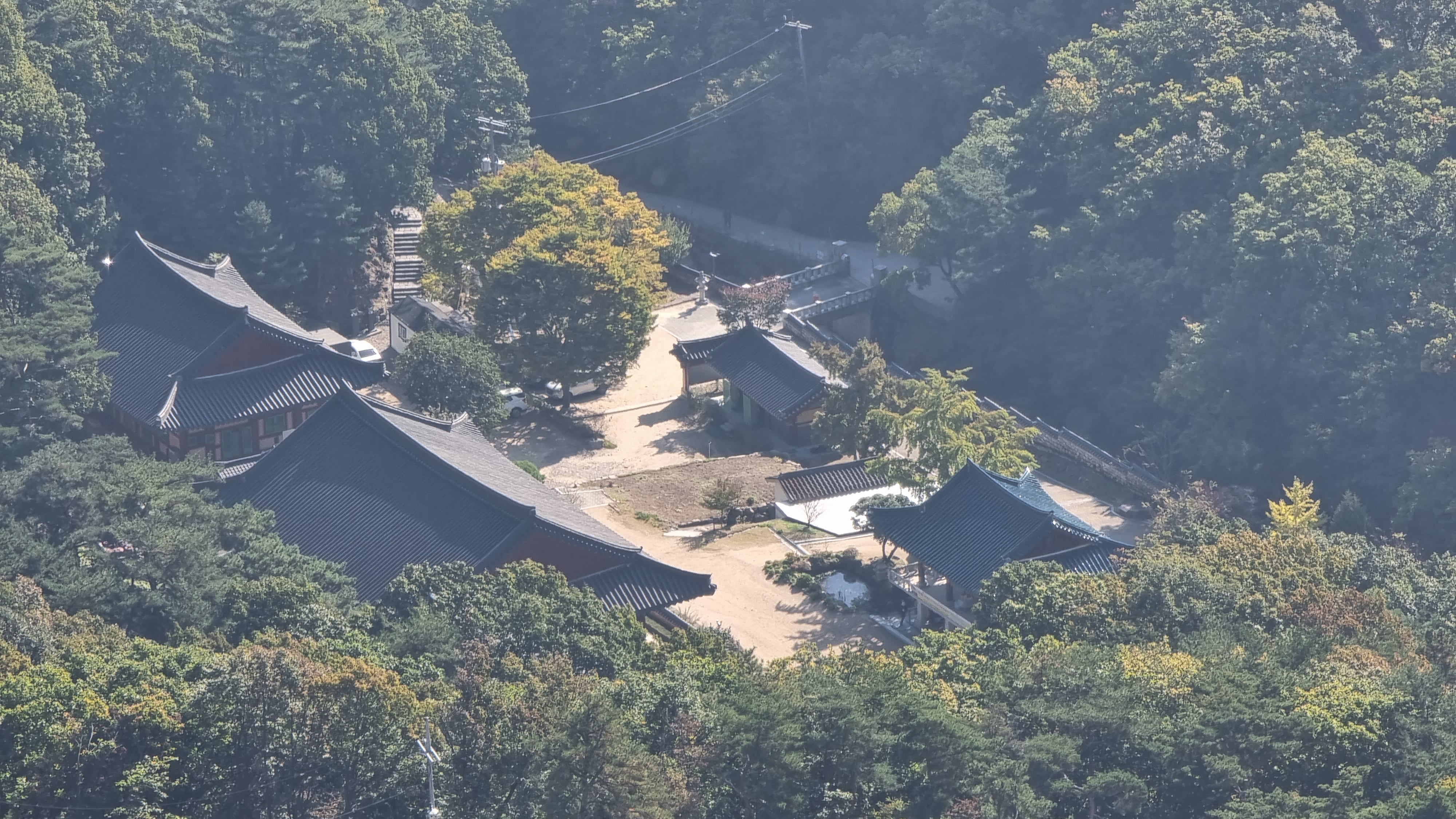 바로 아래는 호암사가 있는게 보인다, 호암사는 극락전과 미륵대불 뒤편