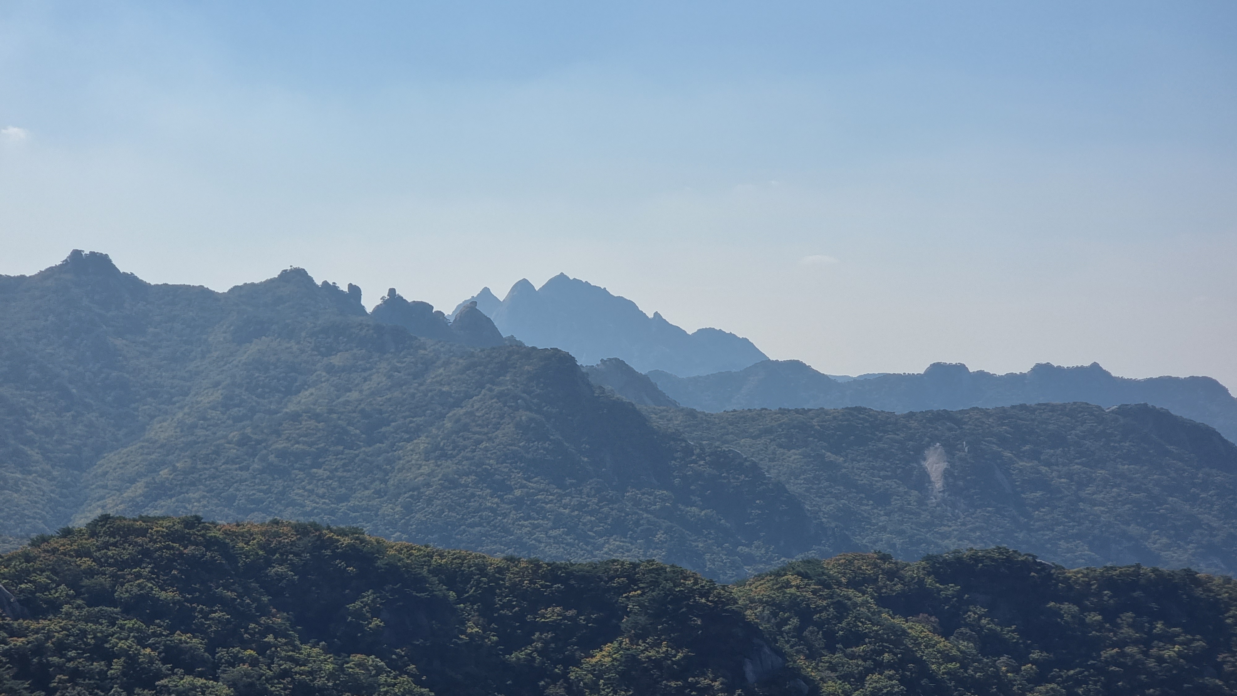 여성봉이 보이고 그 다음으로는 인수봉과 백운대 그리고 만경대, 백운대