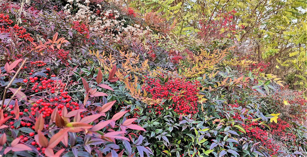 매자나무과 남천 열매도 보인다,