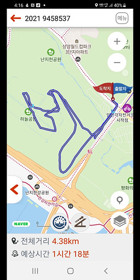 돌아온 거리는 약 4,4km로 1시간 18분 정도가 걸렸다,