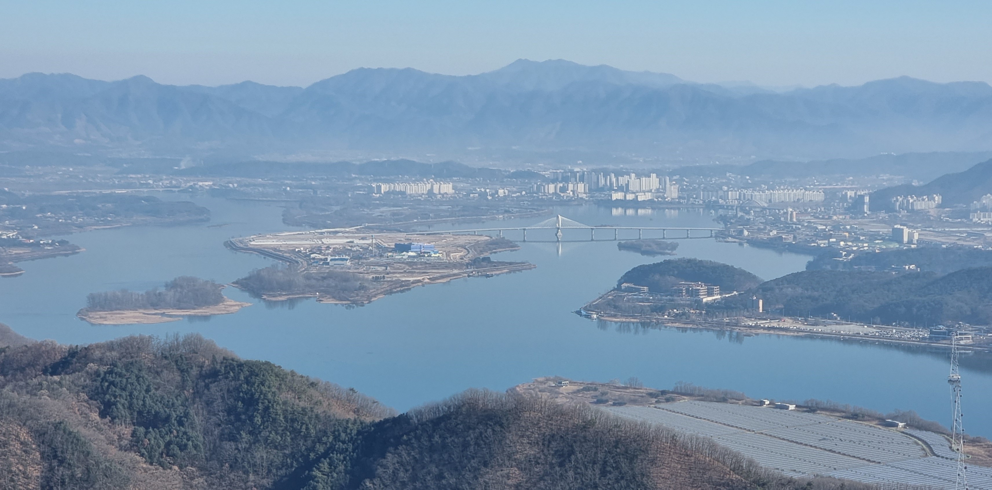 오봉산 일대까지의 산 군락도 보인다,