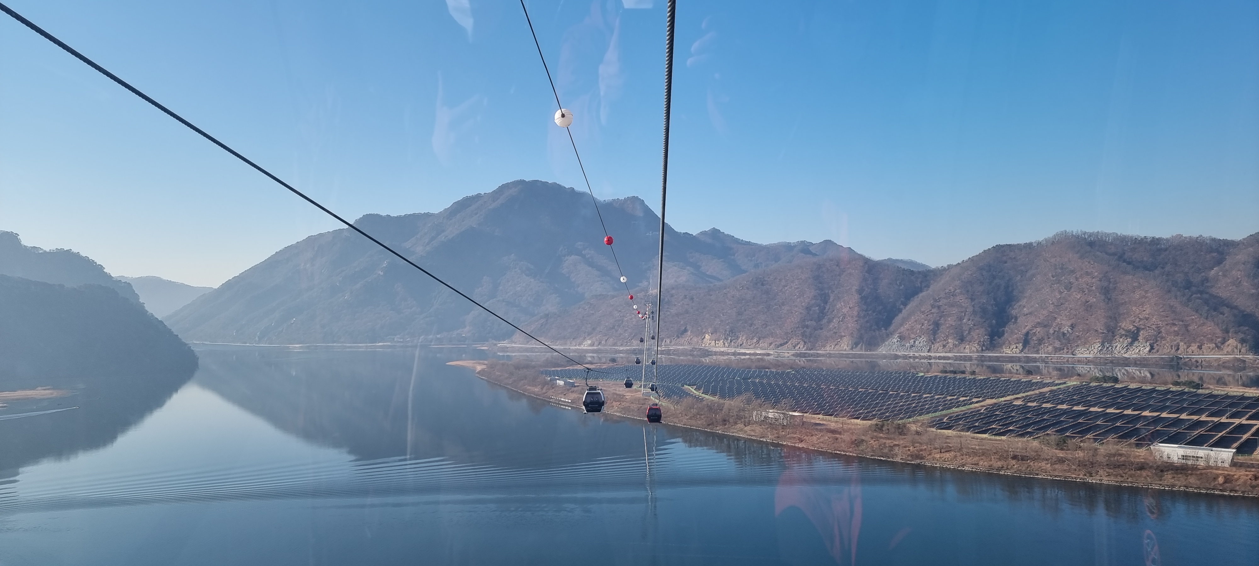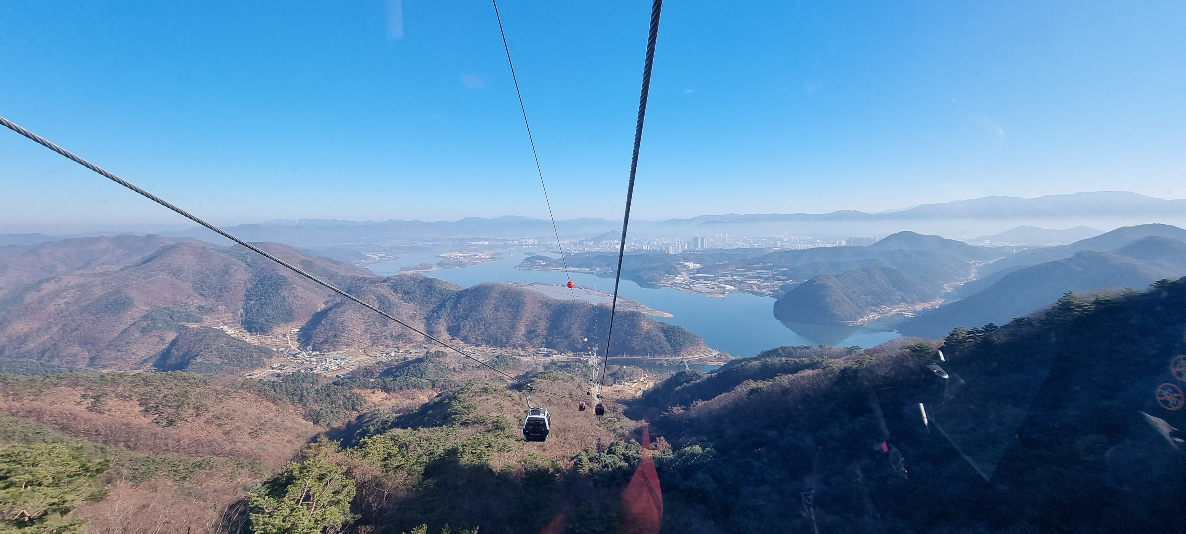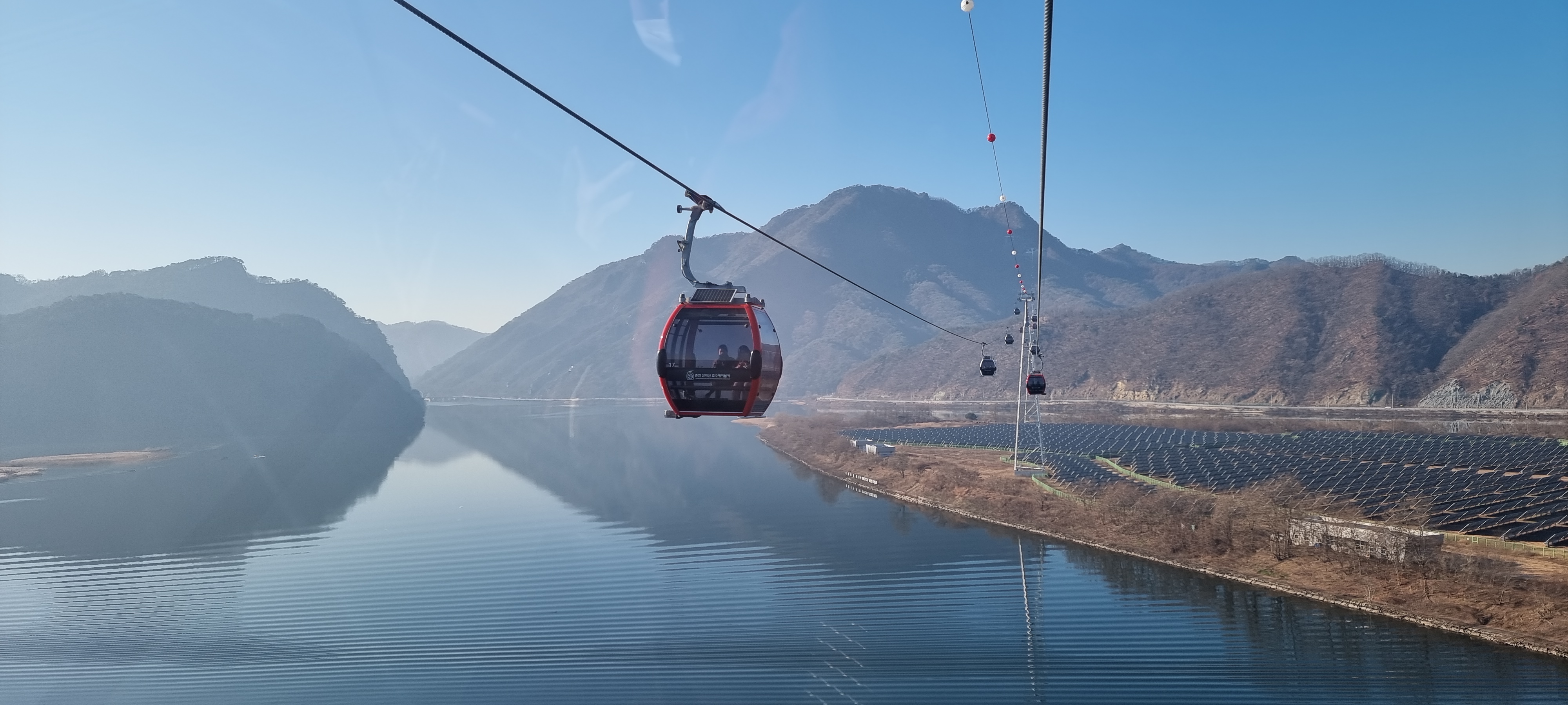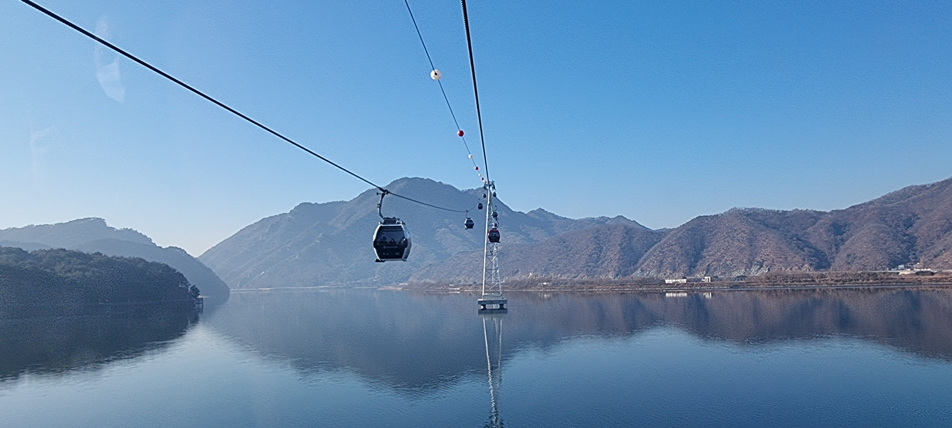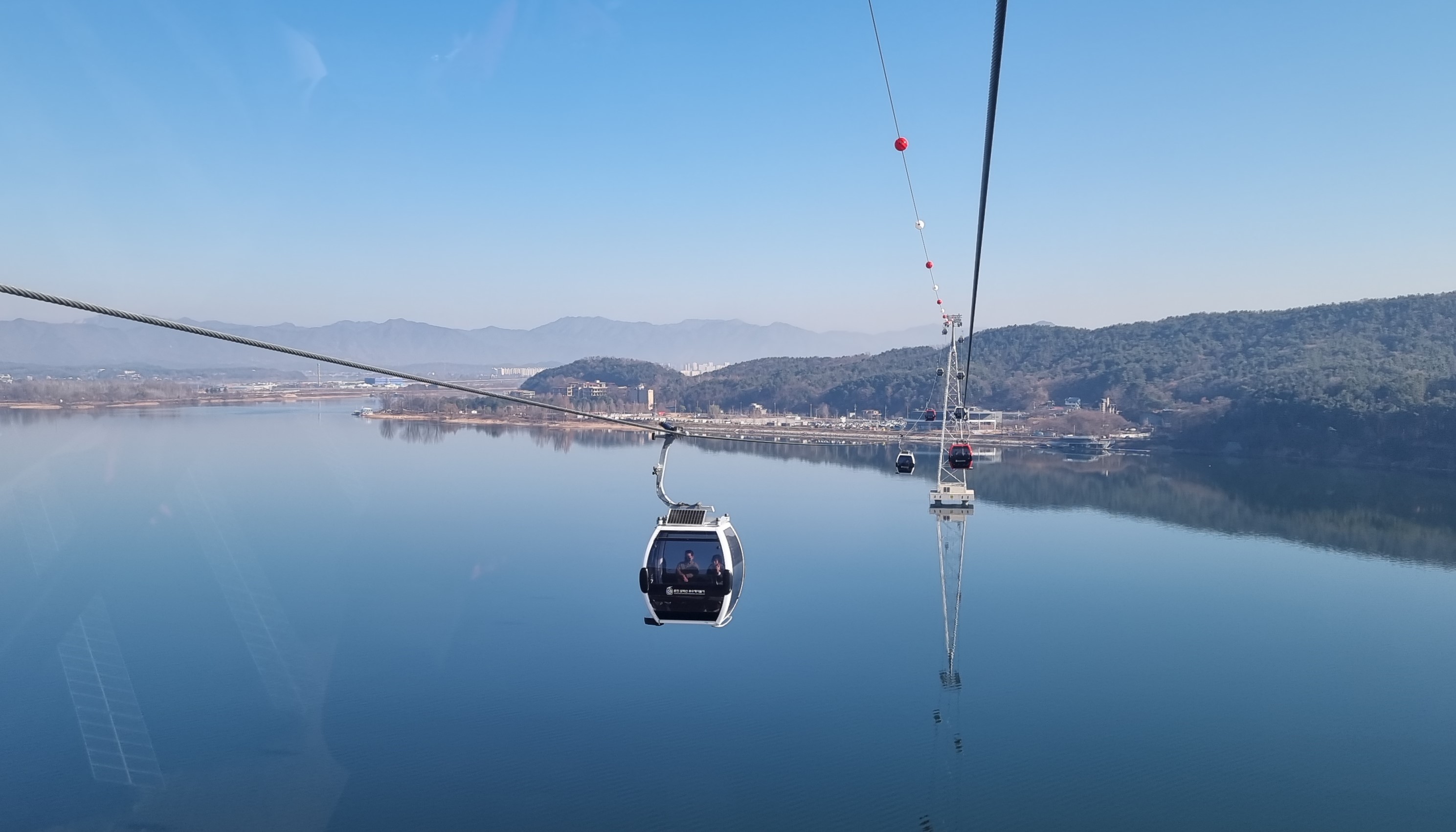 케이블카는 의암호 위 하늘로 이동을 한다,