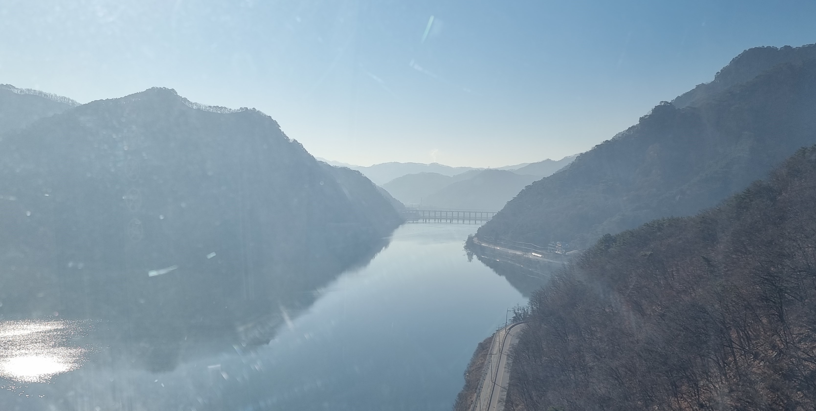 중도로 이어지는 춘천대교가 아름답게 보이는 삼악산 상부정차장 옥상