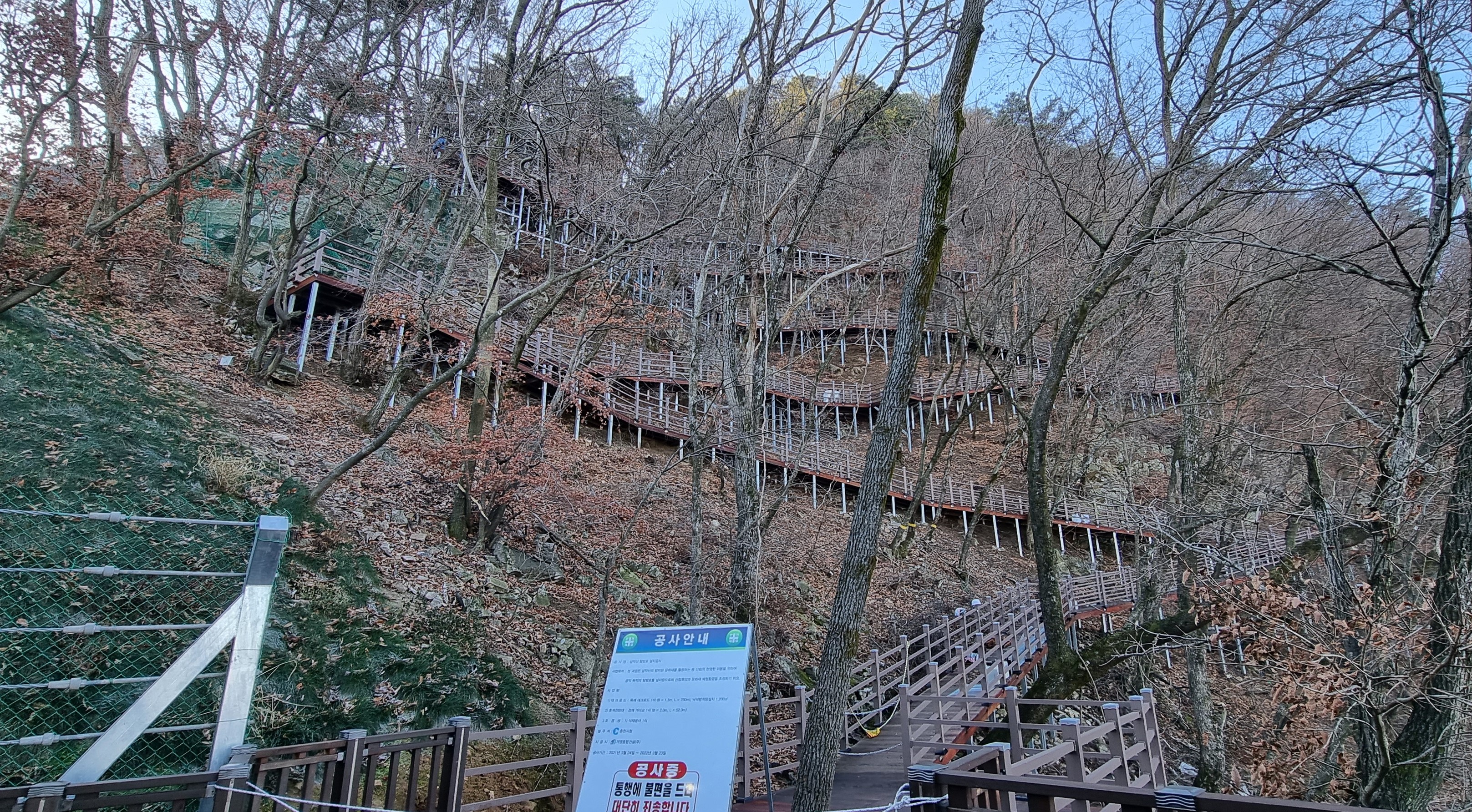사진에 보이는 것 처름 정상 전망대로 가는 데크계단이 만들어저 있는데