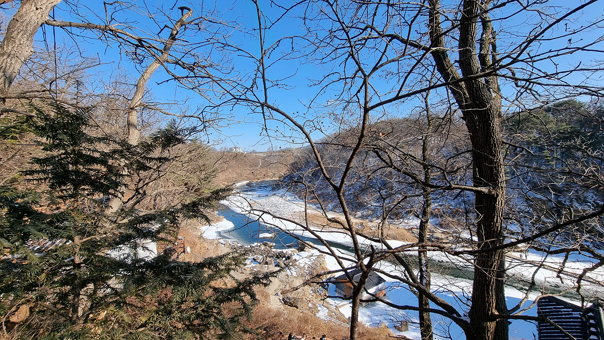 올라가면서 내려다 보이는 고석정일대 한탄강