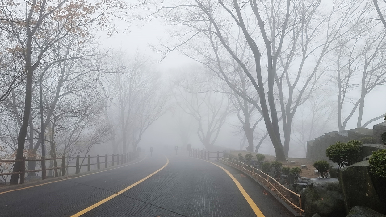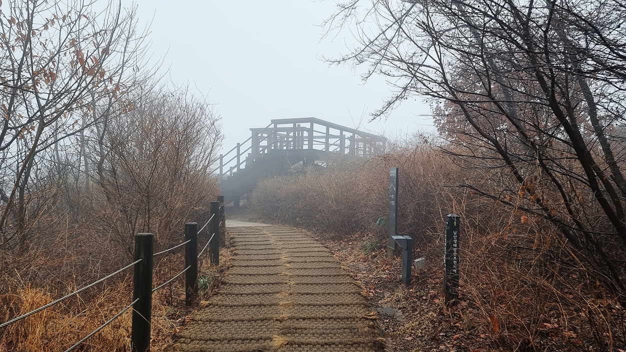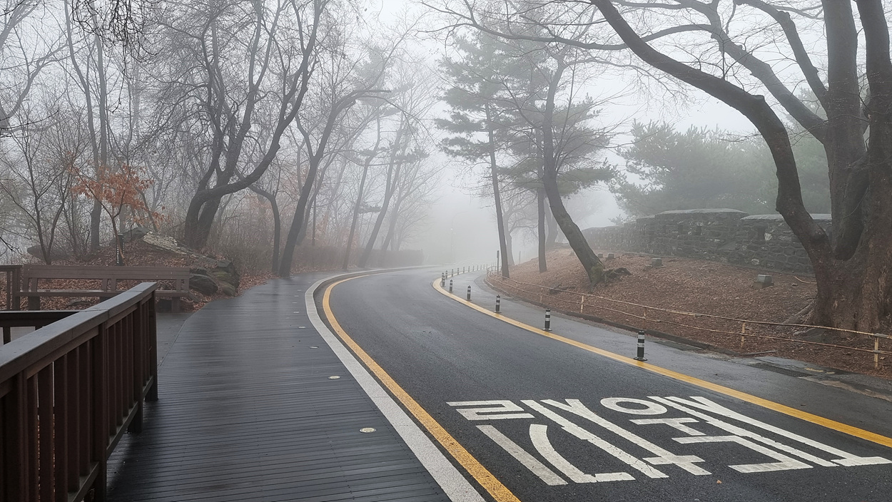 내려가는 길도 짖은 운해로 가시거리가 좋지는 않지만