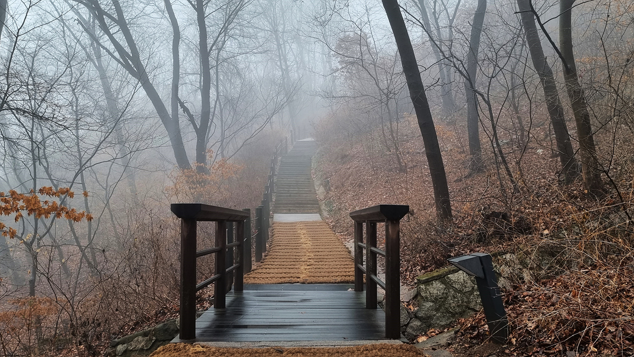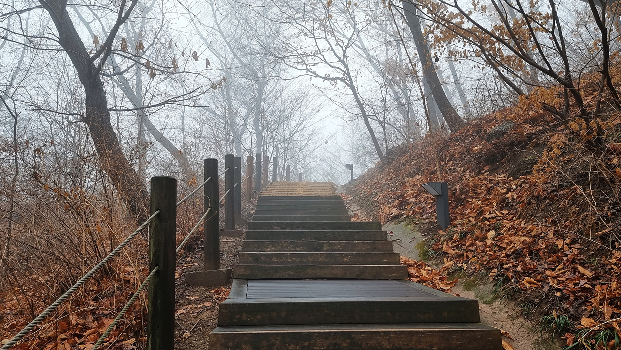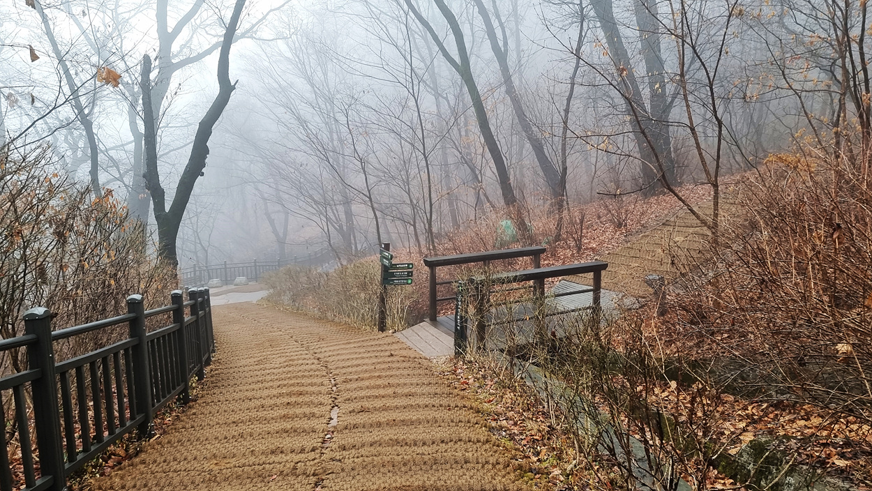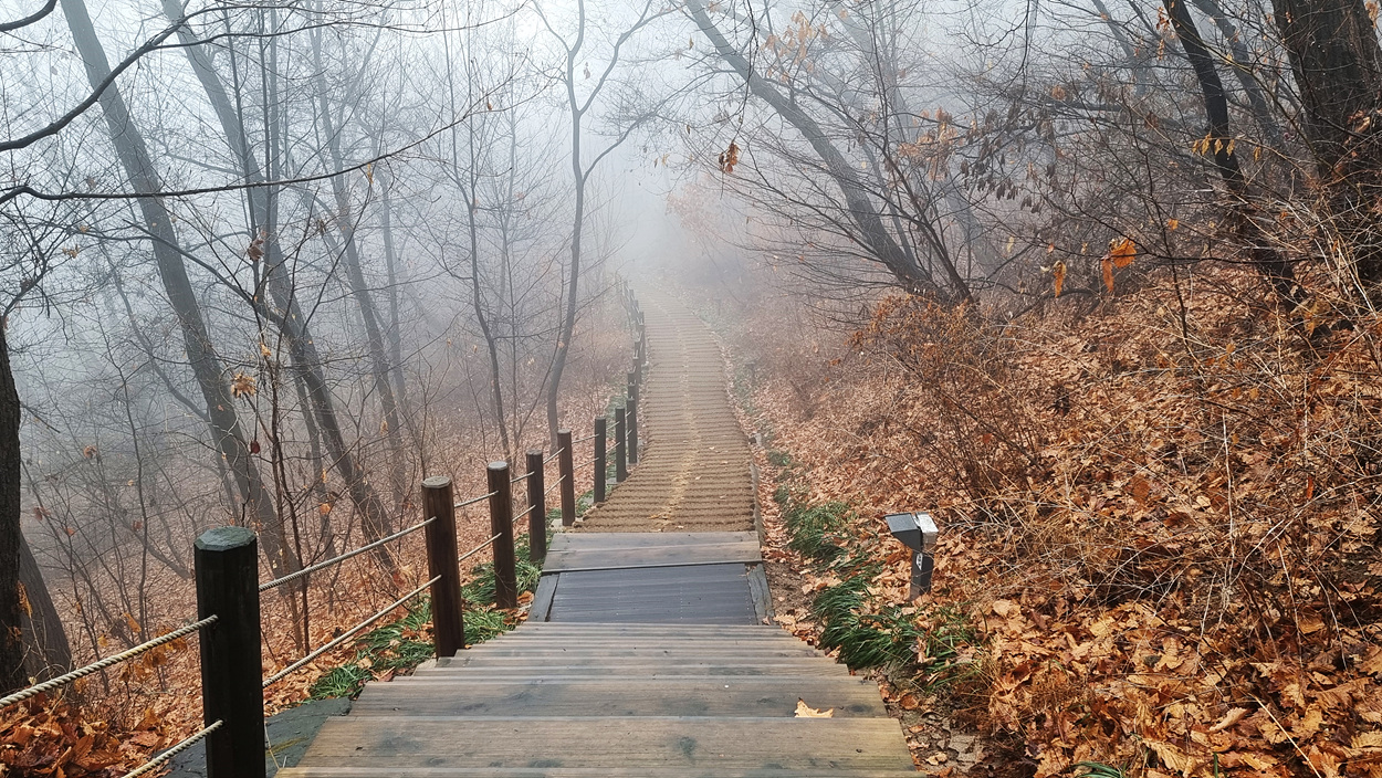 내려가는 길도 짖은 운해로 가시거리가 좋지는 않지만