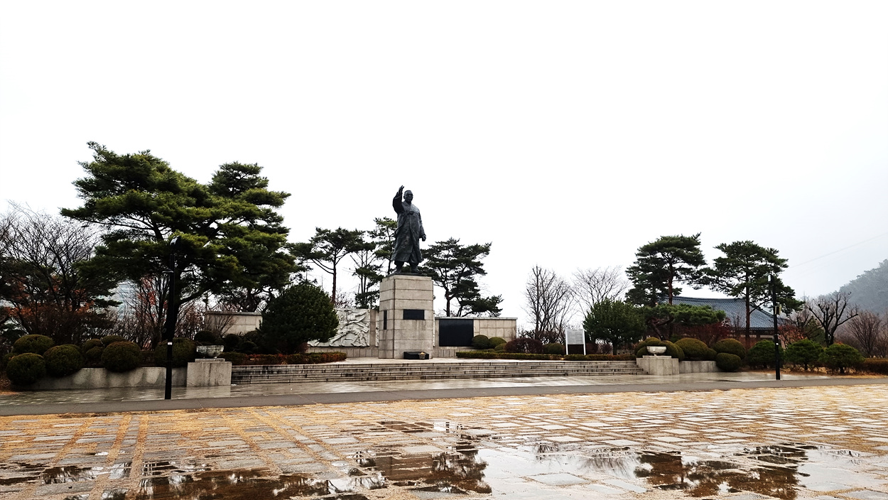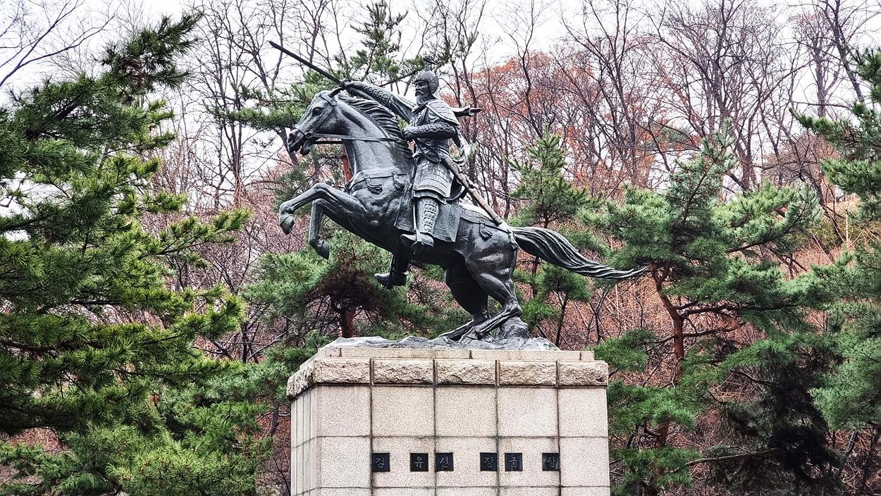남산공원입구 150m왼쪽에 김유신장군 동상이 있는데