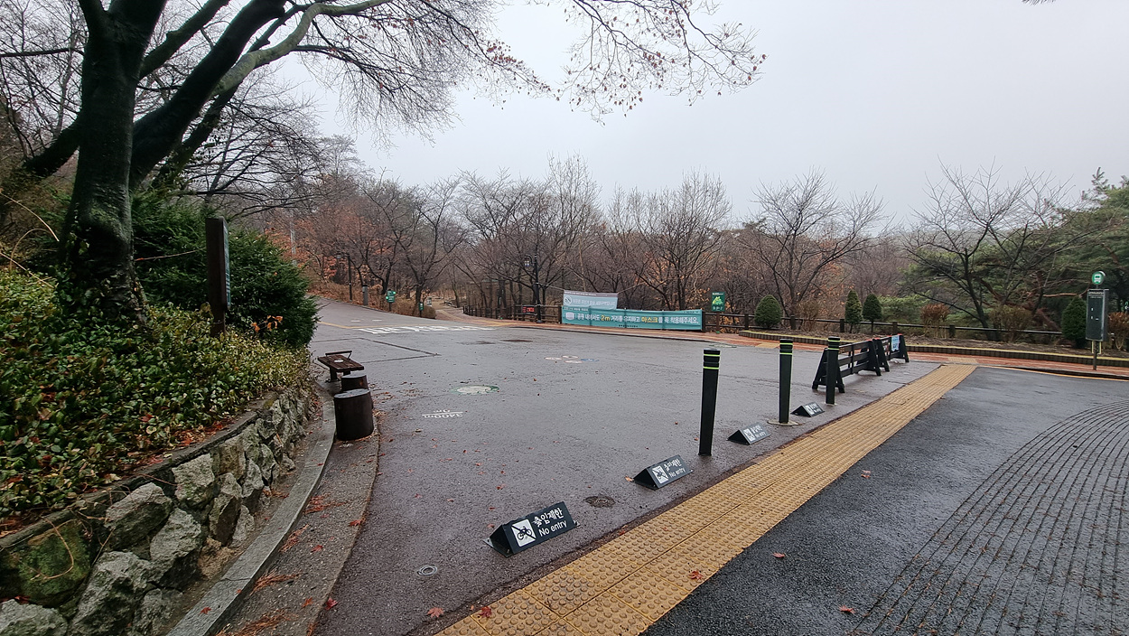 남산으로 운행하는 버스는 모두 전기버스다, 일반 차량은 여기로 올 수 없다,