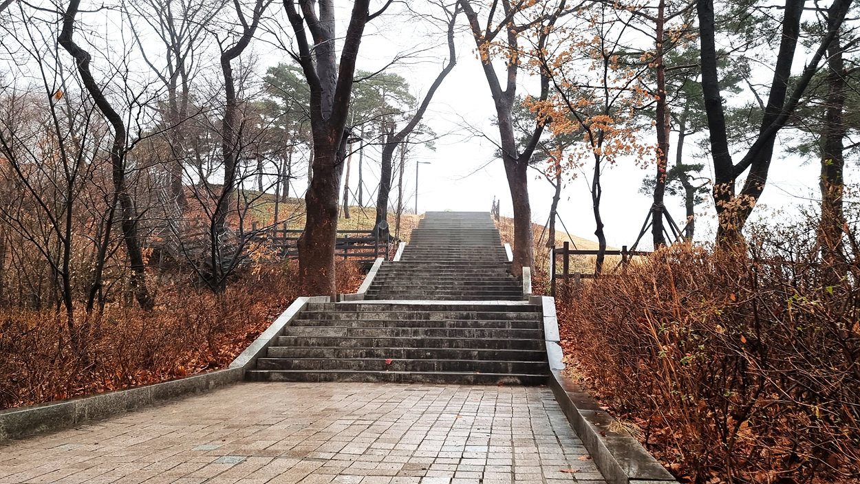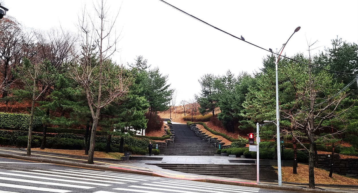 백범광장에서 서울특별시교육청 교육정보연구원 남산분관으로 올라간다,