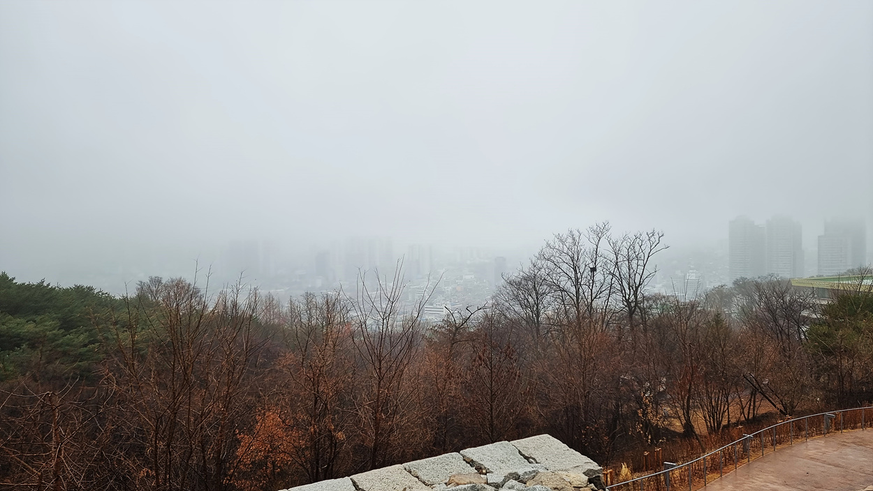 그러나 오늘은 남산 정상부의 모습도 잘 보이지 않는다,