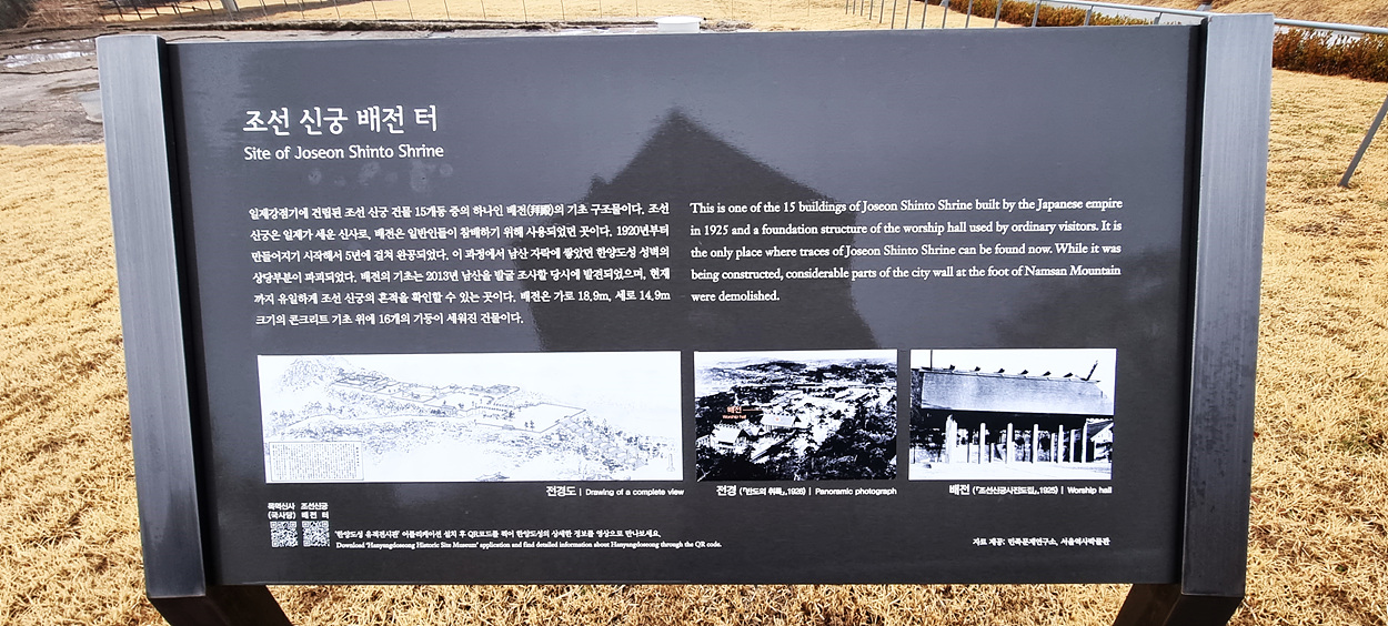 남산인 이곳에 신사를 건축했는데 일본 신사 건축양식에 따라 정전(正殿)과, 배전(拜殿),
