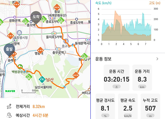 8,32km에 4시간이 걸렸다, 트랭글앱이 업데이트 되더니