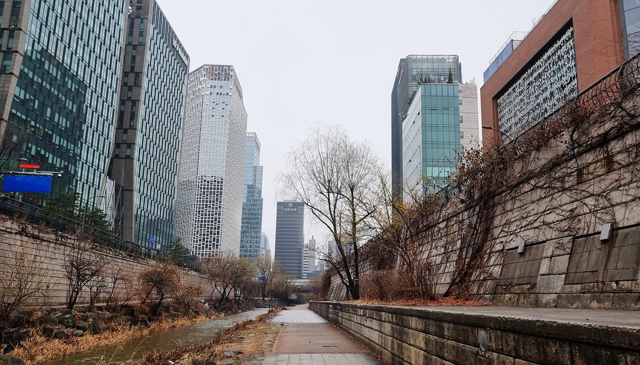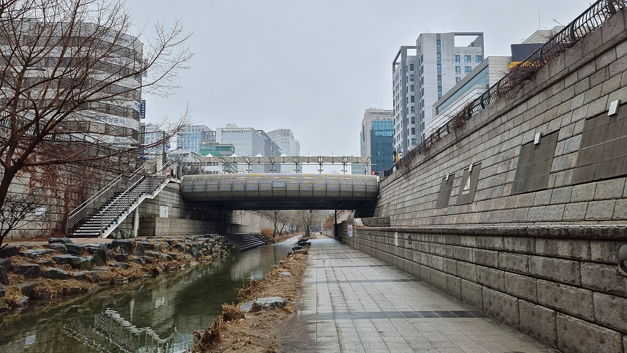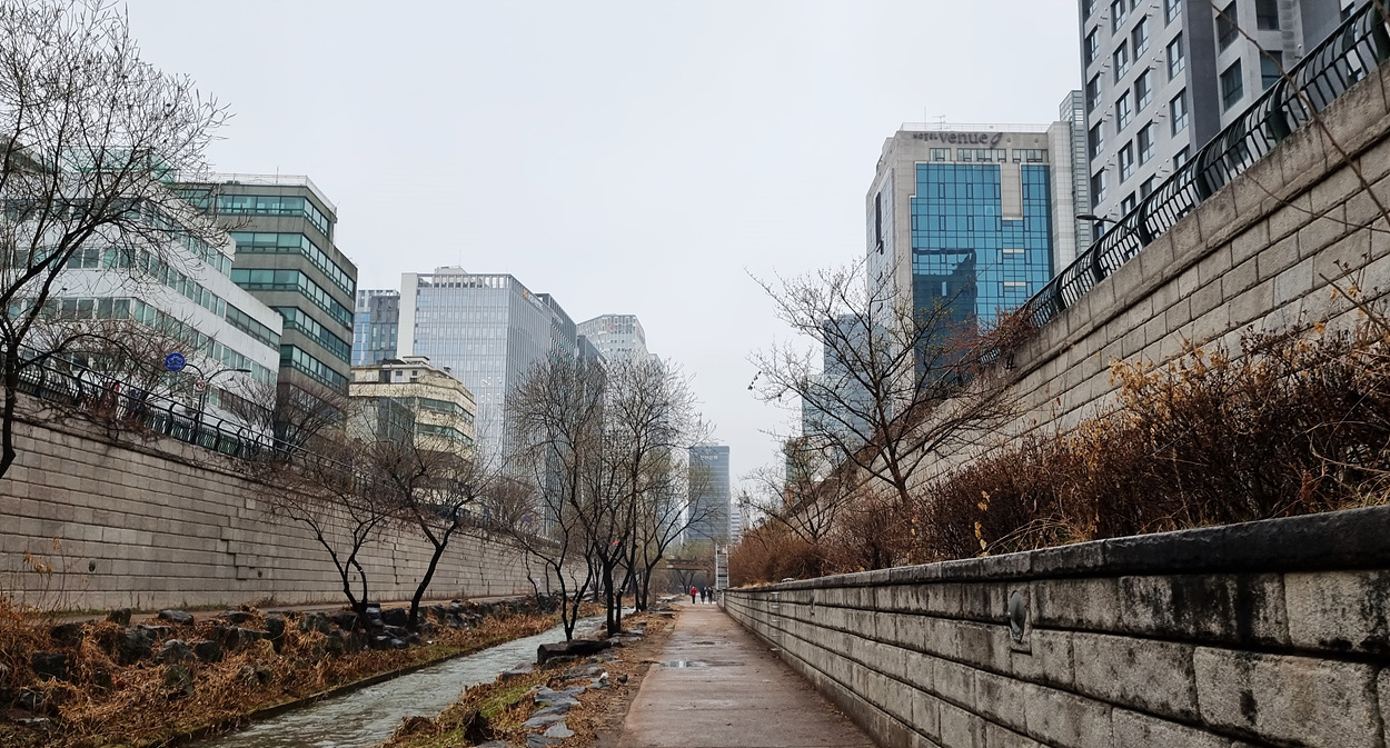 수표교에서 삼일교로 가는길 청계천 담벽에는