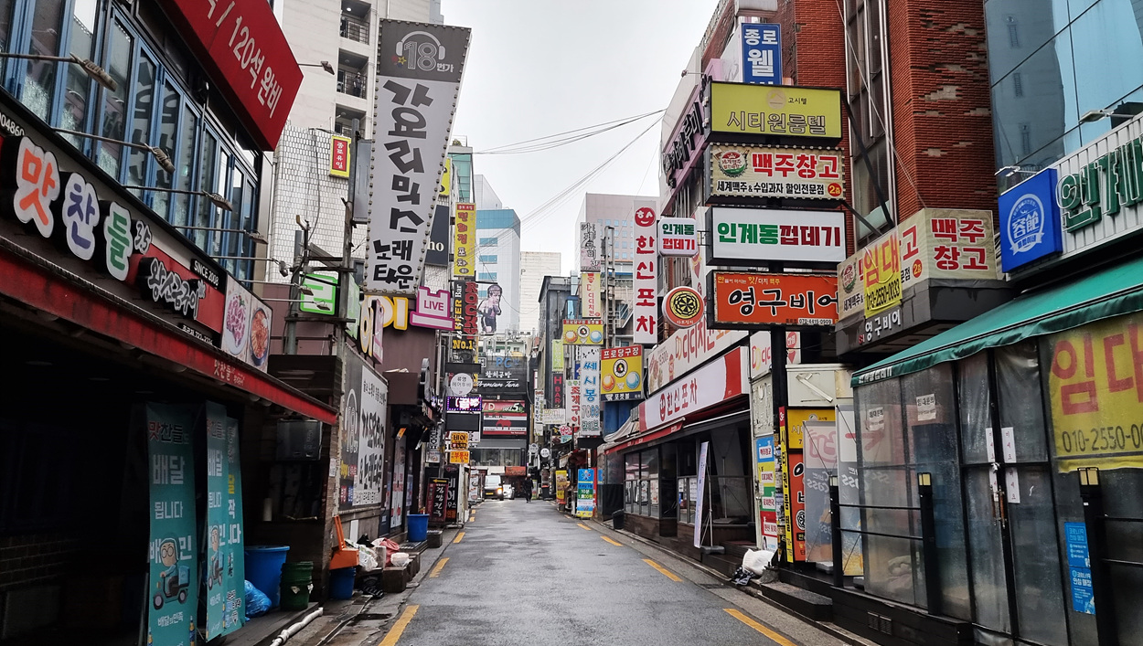 종로로 이어지는 젊음의 거리로 들어간다,