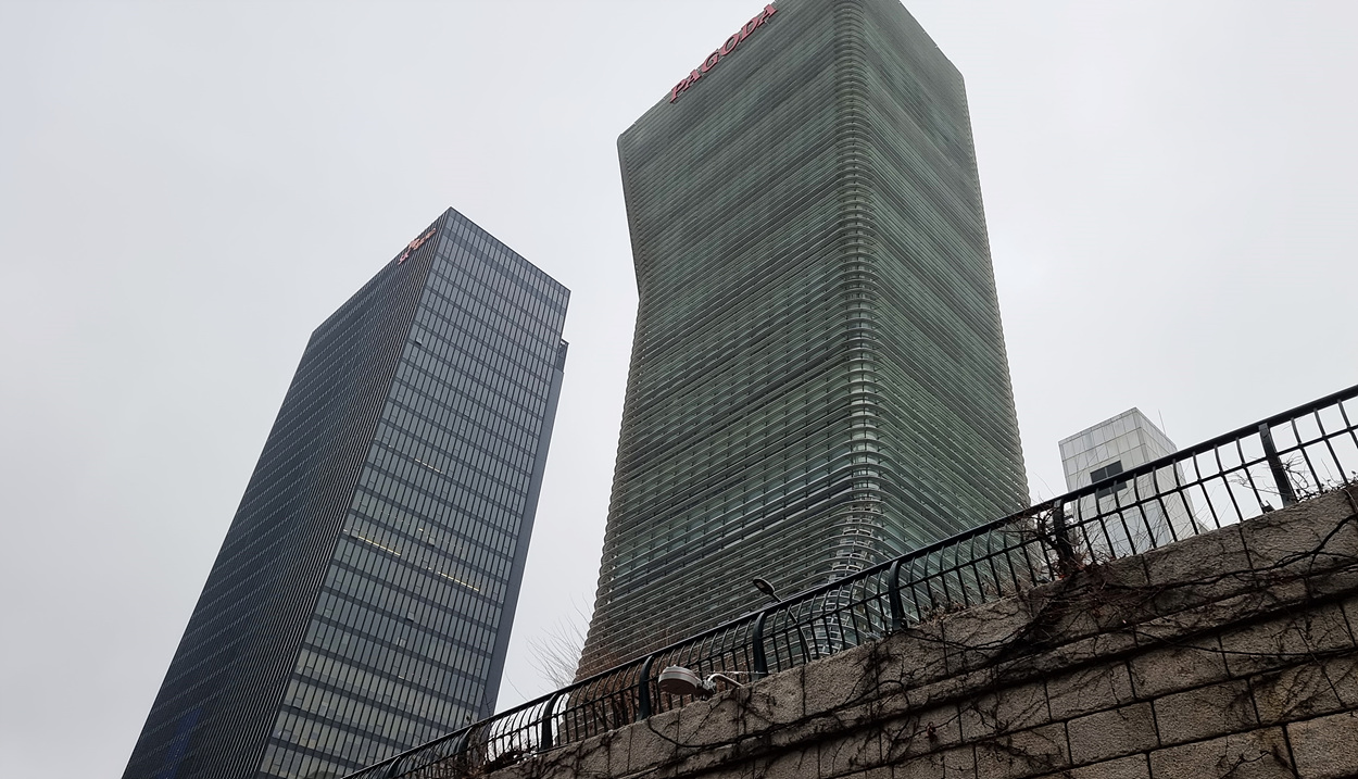 파고다빌딩이 하늘 높은 줄 모르고 서 있다,