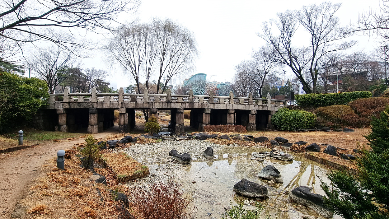 장충단공원 초입에 있는 서울시 유형문화재 18호인 수표교.