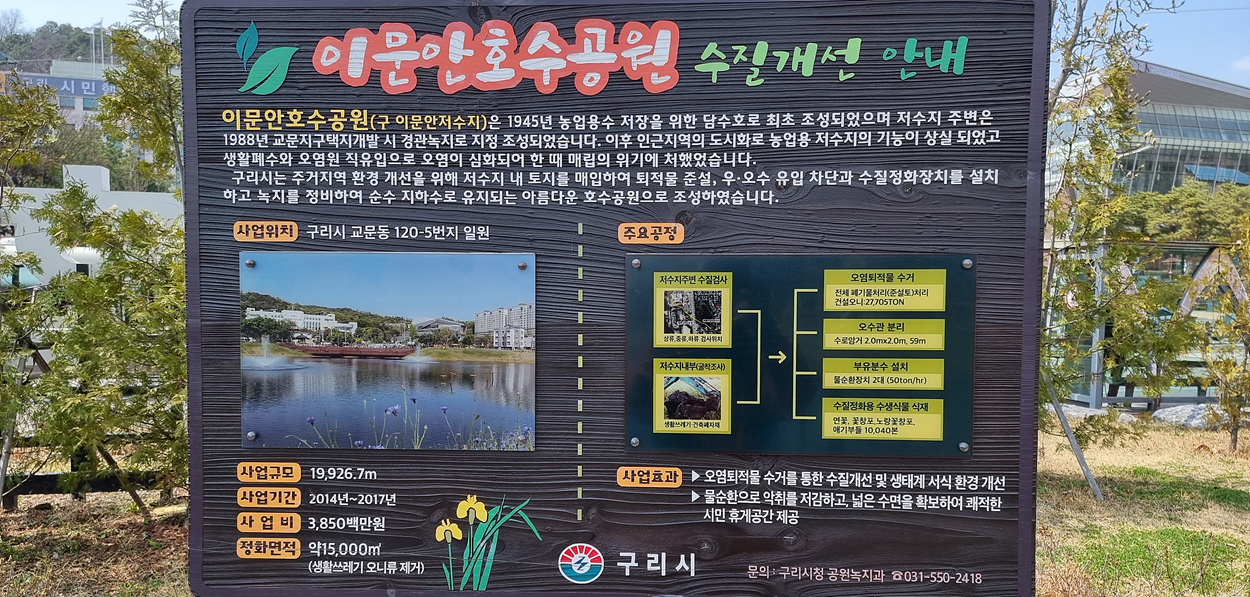 이문안호수공원은 이문안저수지로 1945년 농업용수 저장을 위한