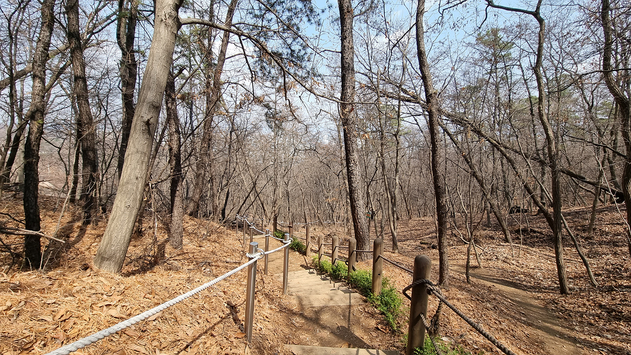 산 경계인듯한 울타리를 지나 울타리 밖으로 나간다,