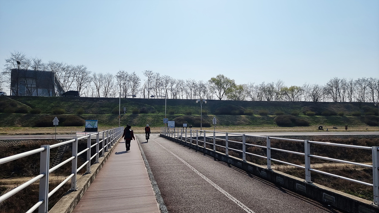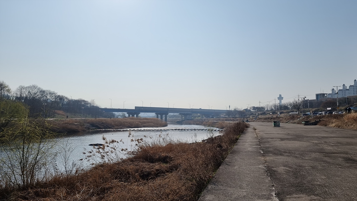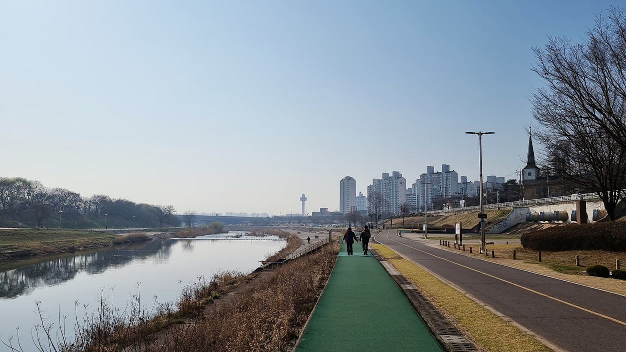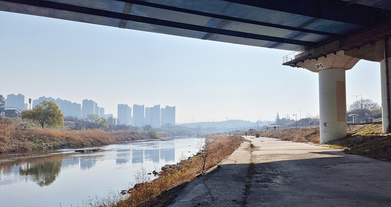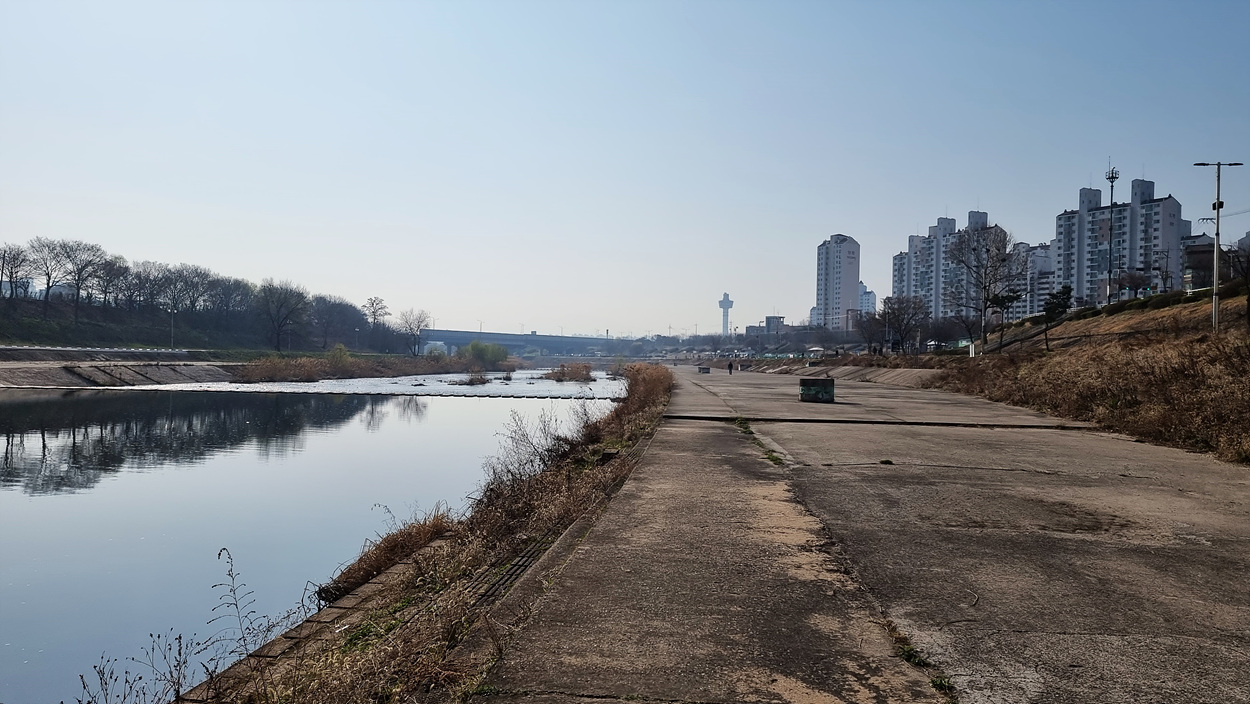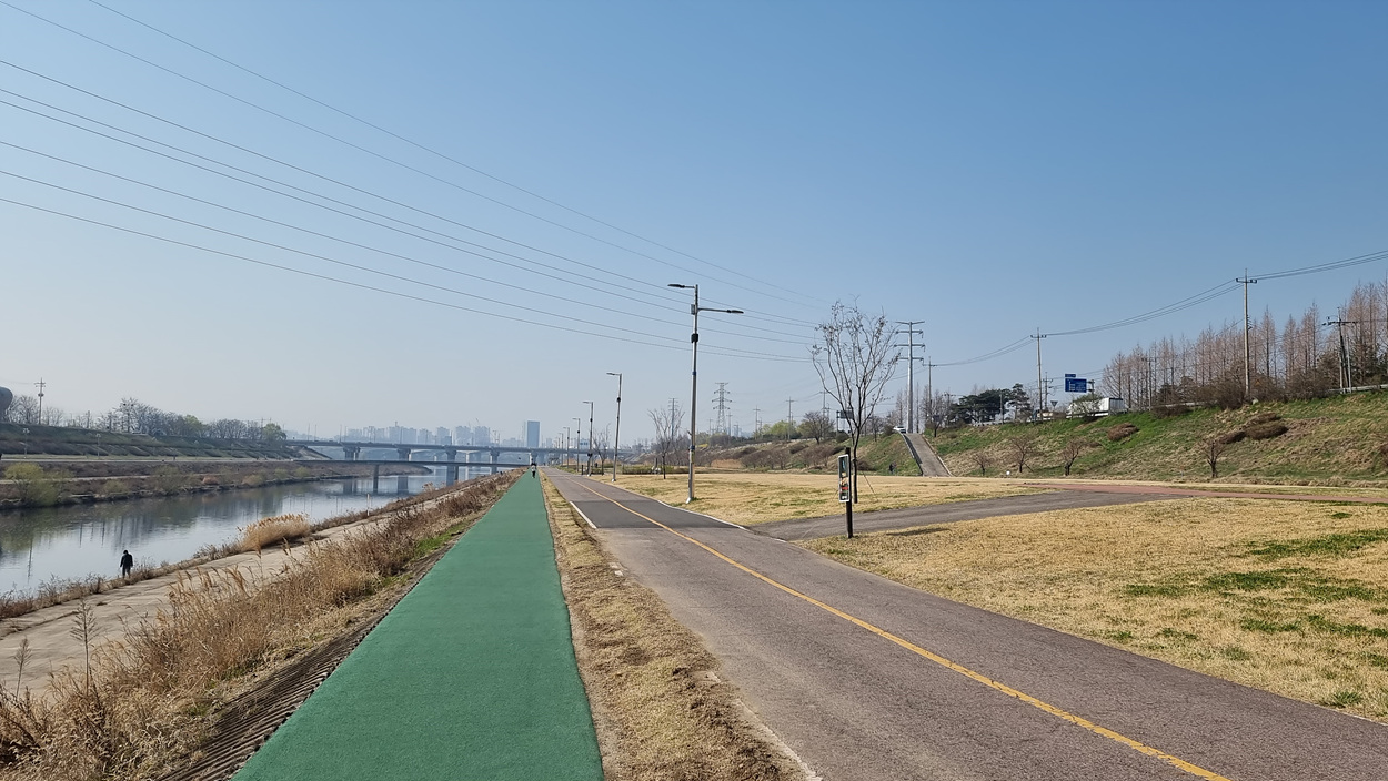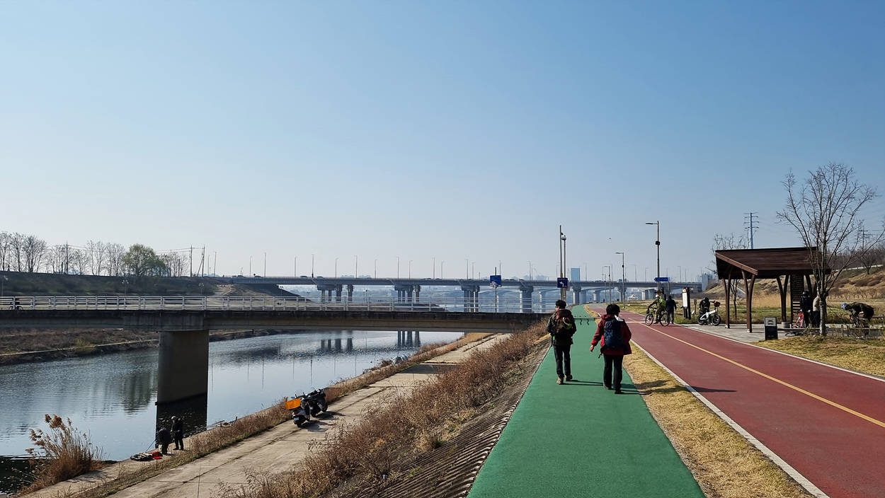 몇km나 되는 먼길을 지루하게 걸어야 하는 왕숙천변 길에