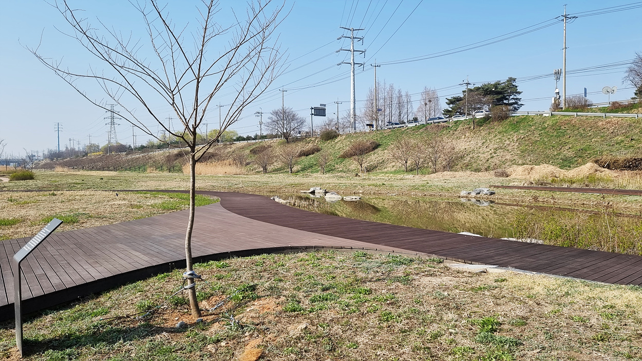 데크로 길을 만든 그 중심에는 작은 연못이 있다,