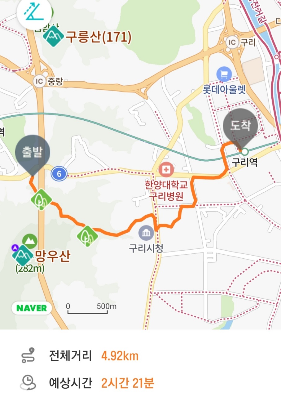 지난주 망우고개에서 구리역까지 4,92km를 왔어니