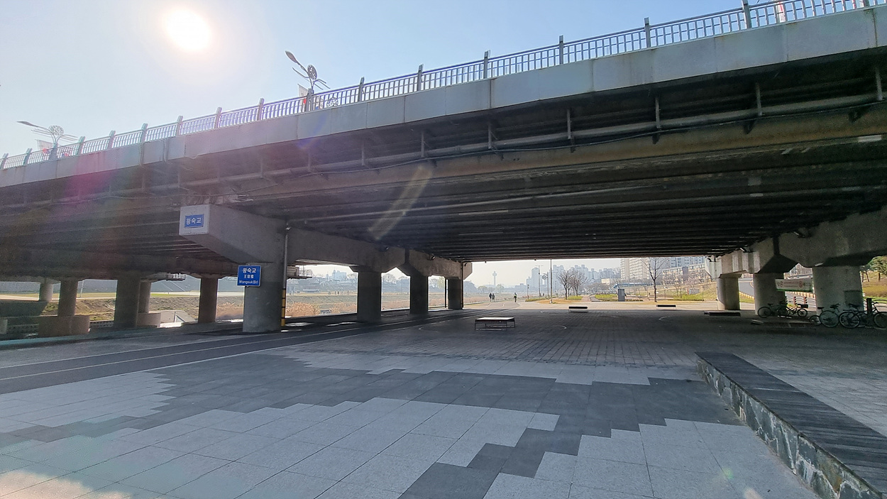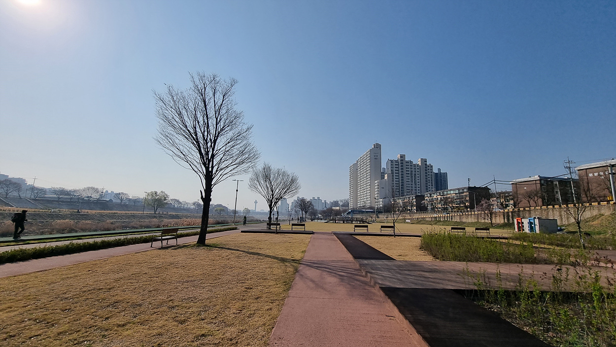 상류인 왕숙천교까지 약 1,3km구간도 공원이 조성되여 있어니