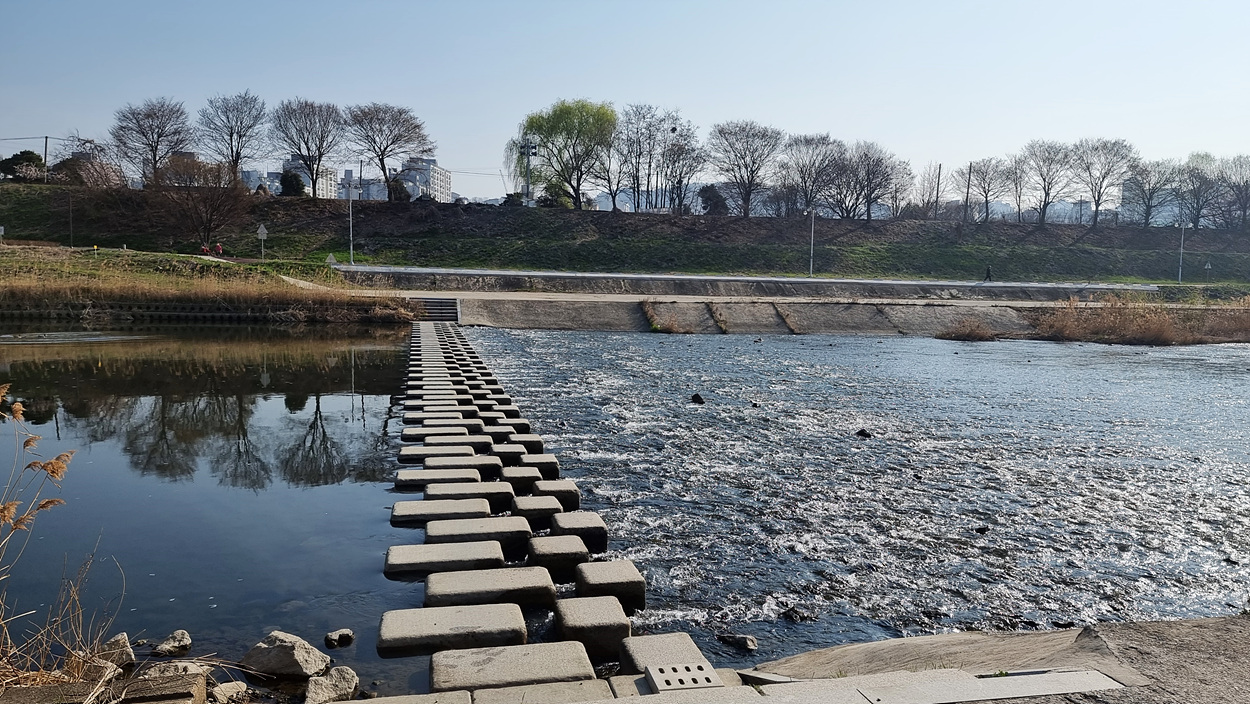 지금이야 다리가 있지만 옛날에는 징금다리나 통나무다리가 있지 않았을까?,