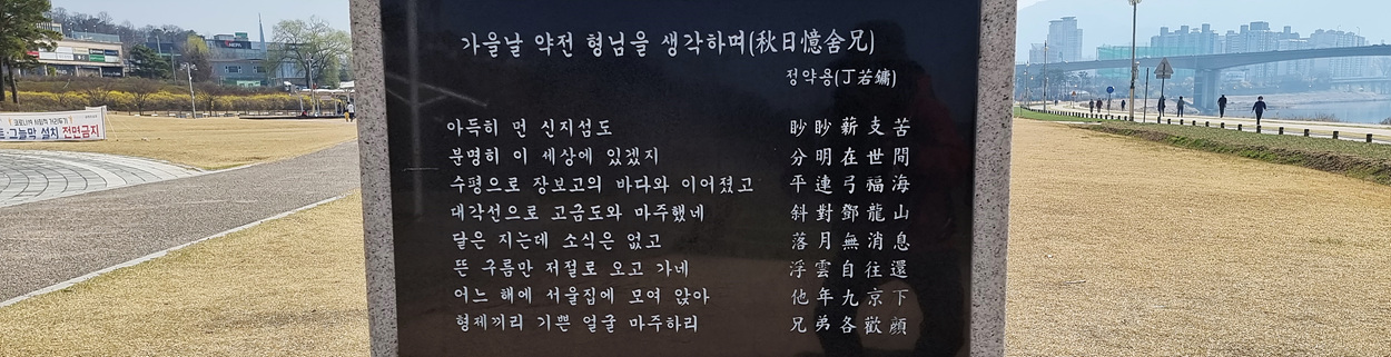 공원 입구에는 다산 정약용 선생의 시비도 있다,