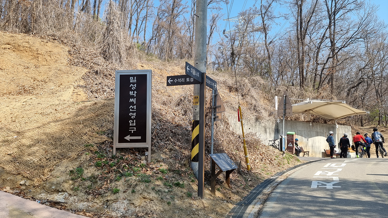 고개마루에는 밀성박씨 선영입구가 있고