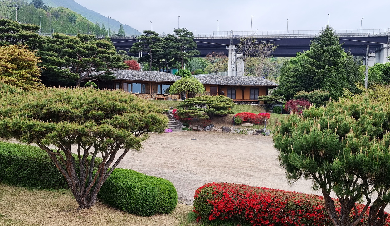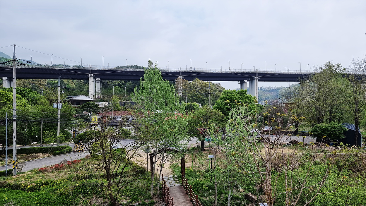 터널을 나가면서 왼쪽 경강로 봉안대교아래 초가지붕형식의