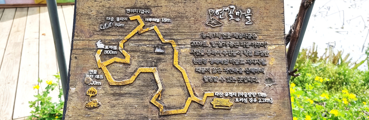 능내터널을 나가면 연꽃마을 안내도 있다,
