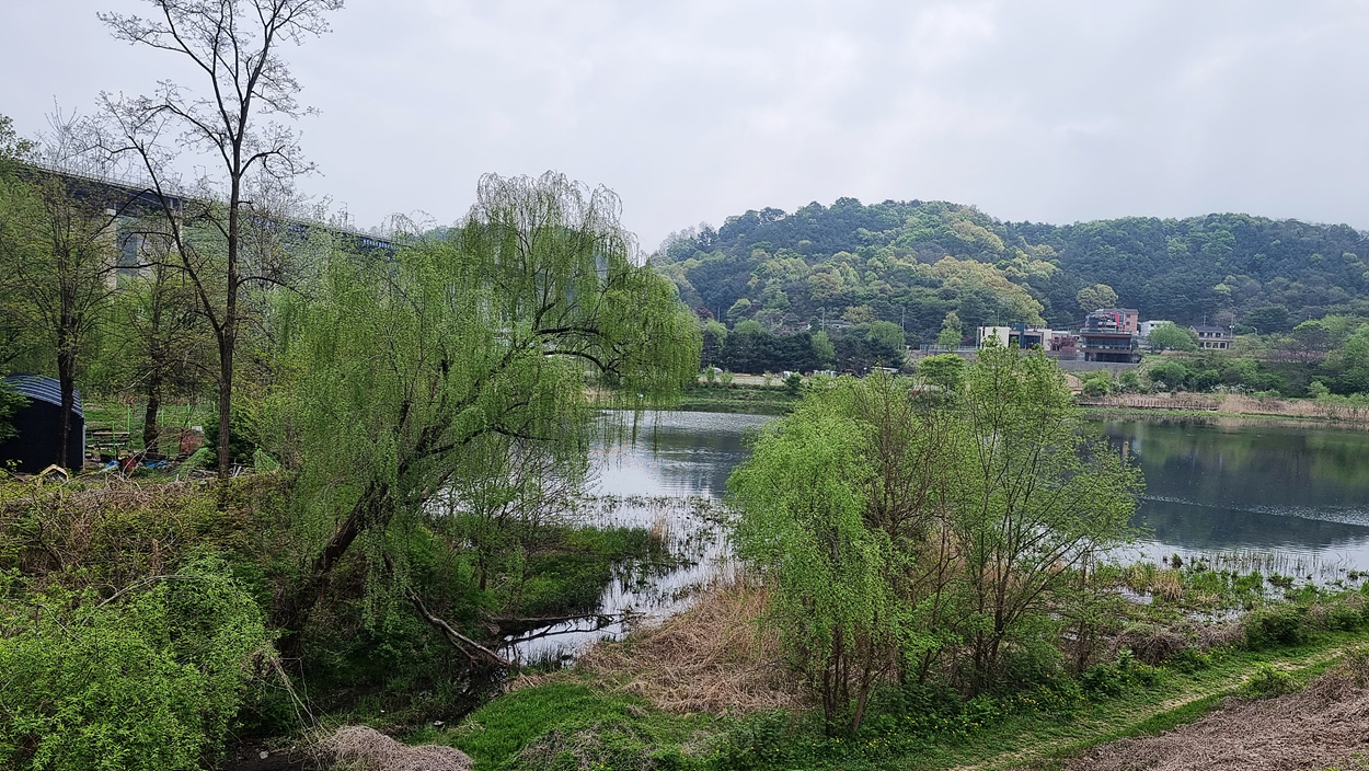 저수지도 아니고 농지도 아닌 물 웅덩이 끝으로
