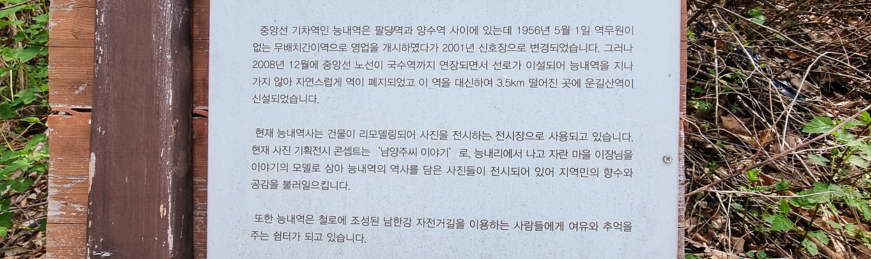 삼아 능내역의 역사를 담은 사진들이 전시 되여있어 지역민의 향수와 공감을 불러 일어킨다,