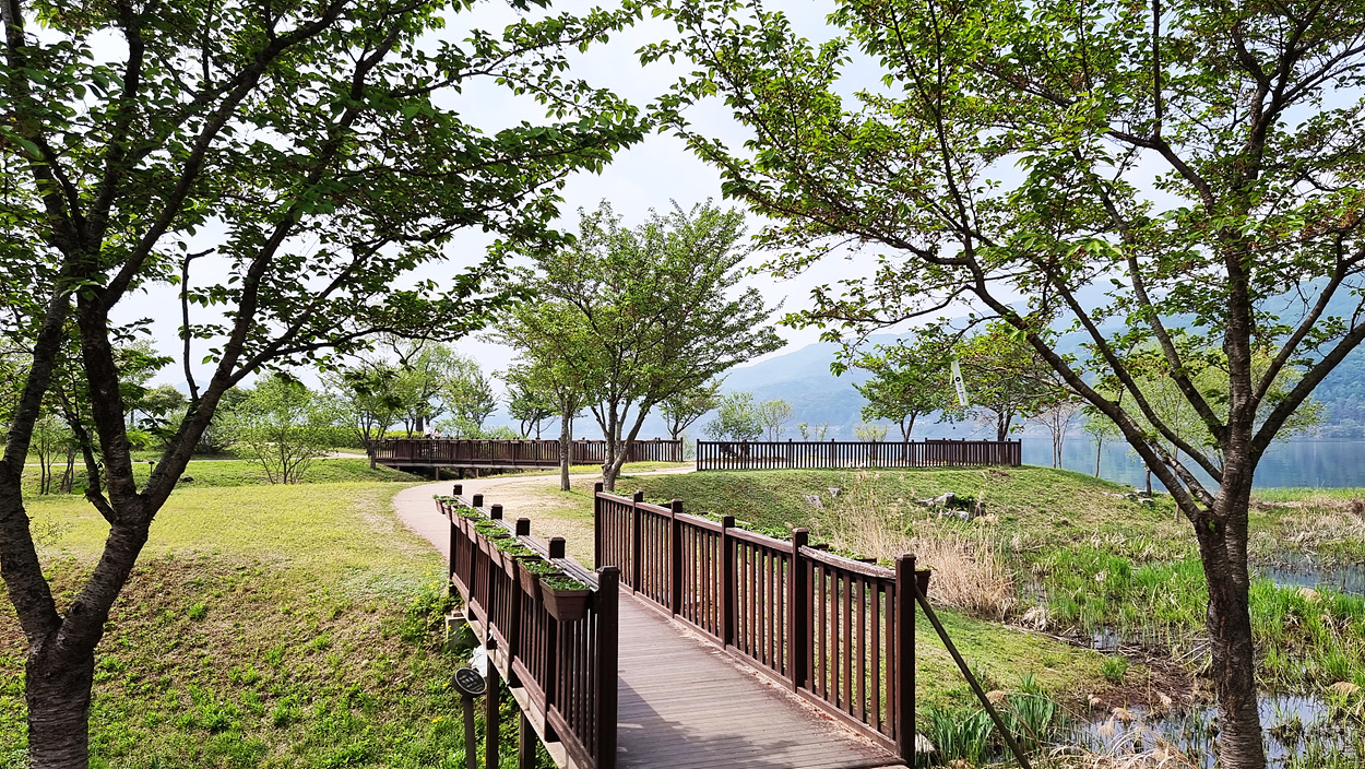 연꽃단지와 생태습지 사이로 거닐수 있는