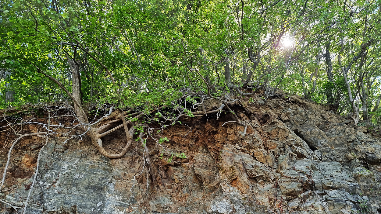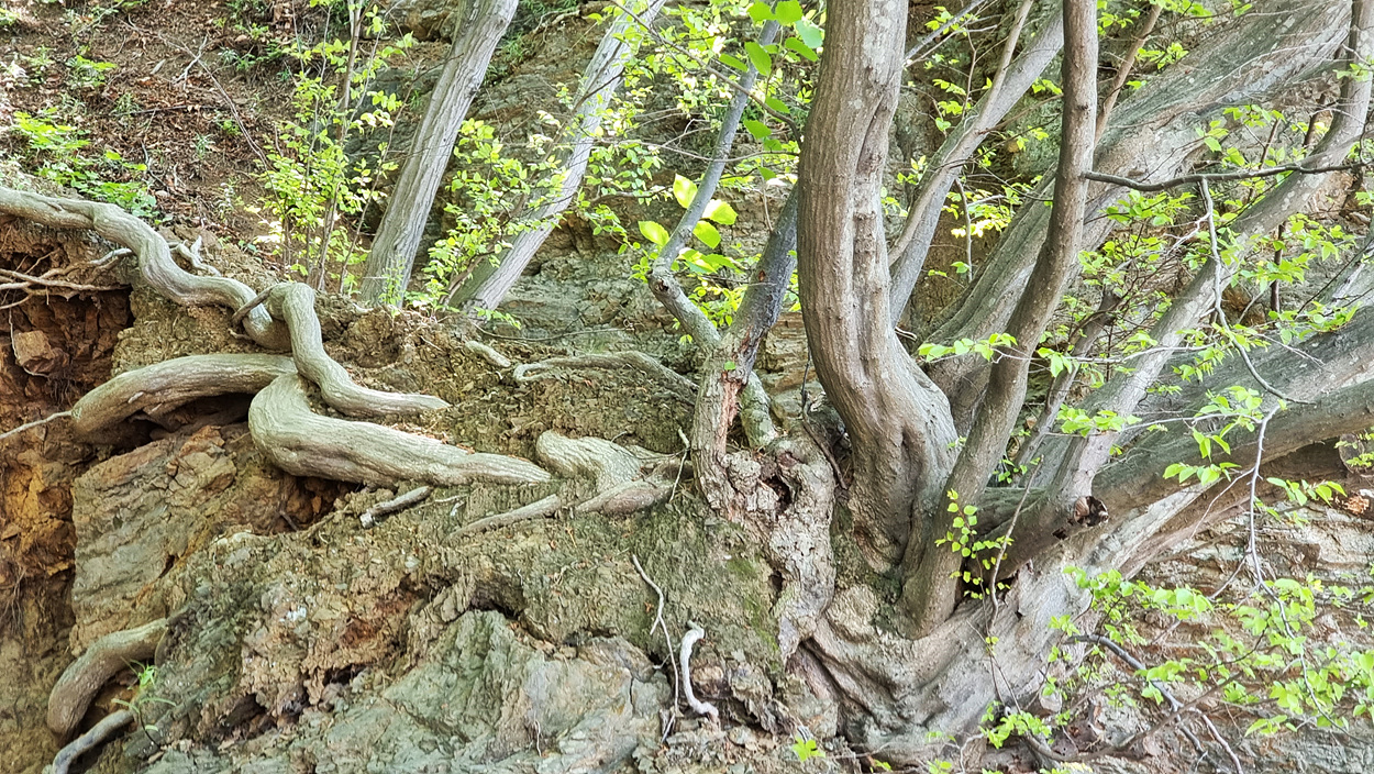 나무 뿌리가 돌출되여 있는 것도 보인다,