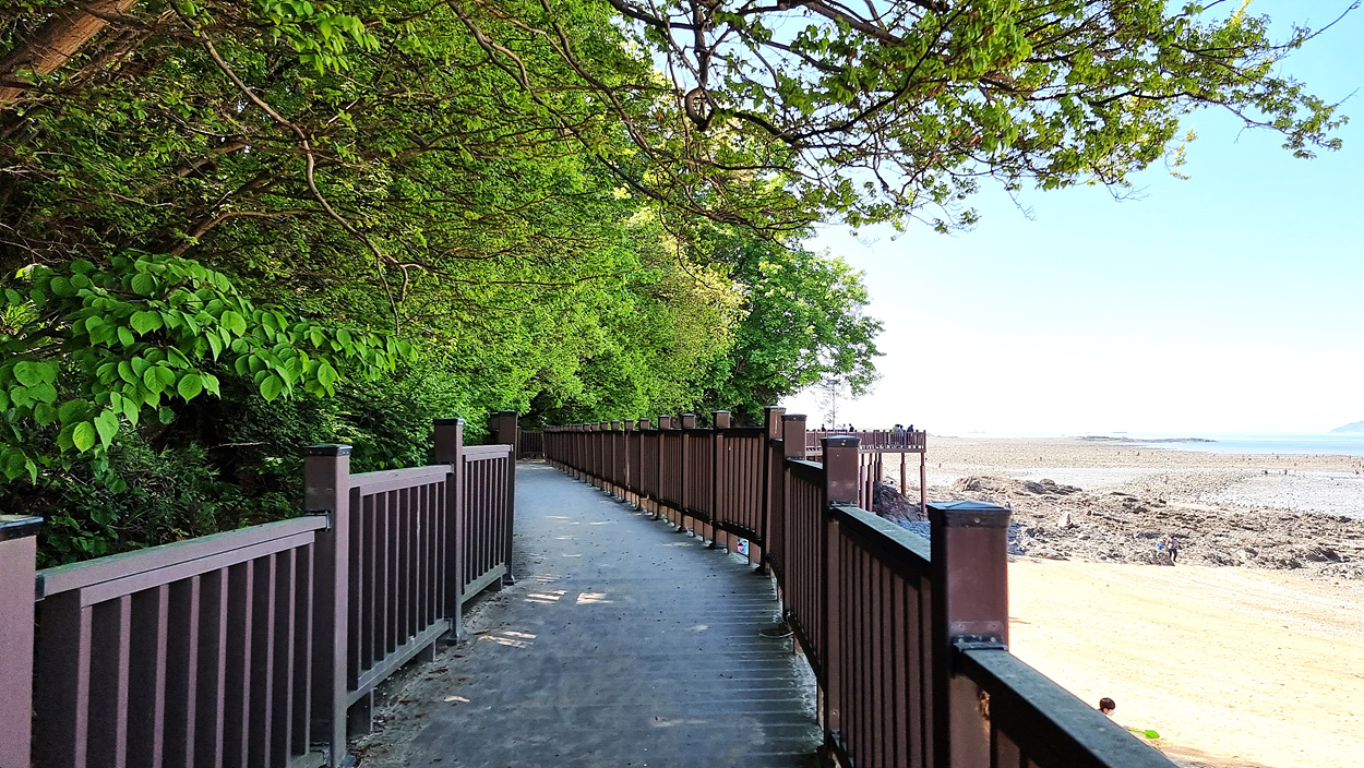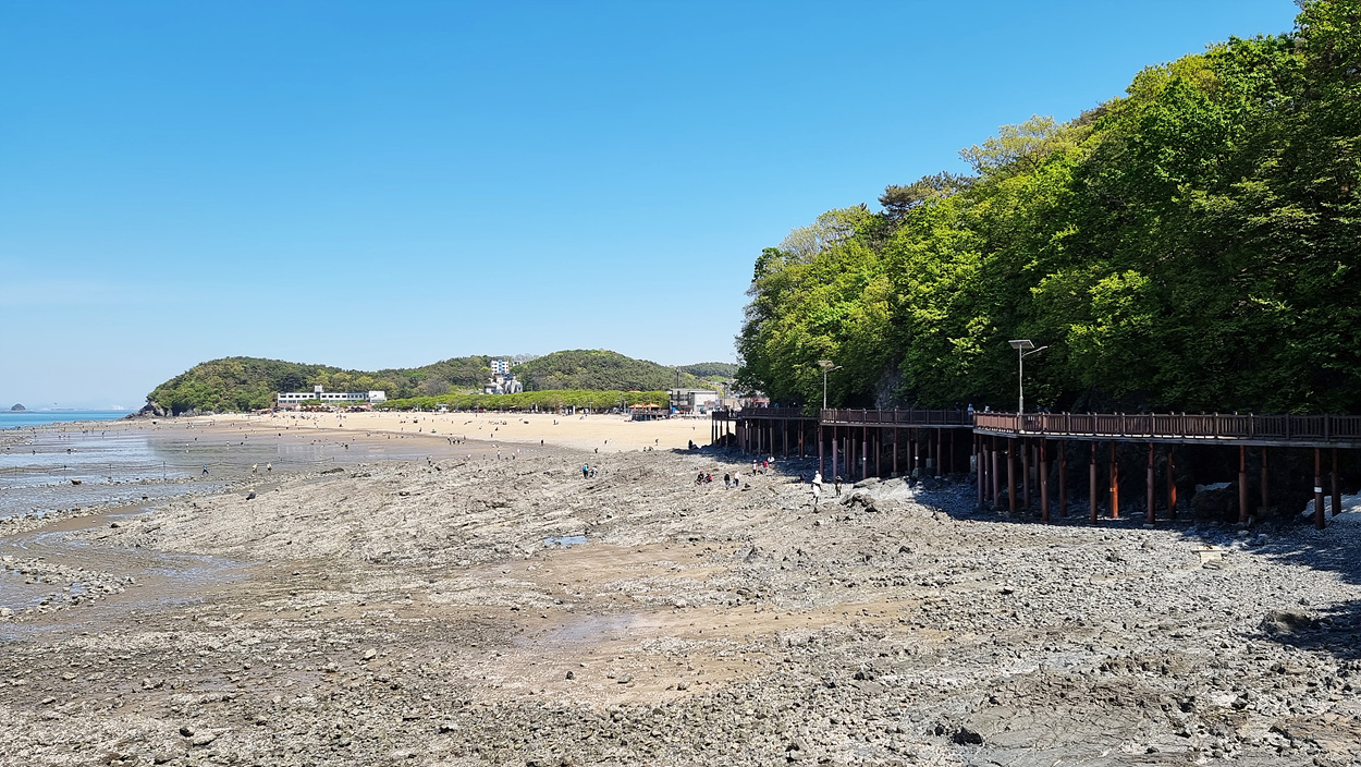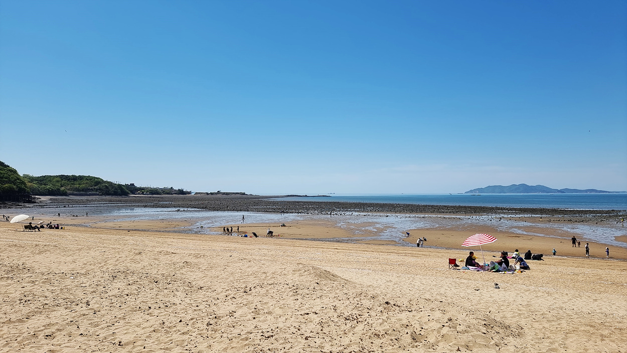 해변으로 해변의 길이 1Km, 폭 30m의 왕모래와 작은 자갈로 이루어진