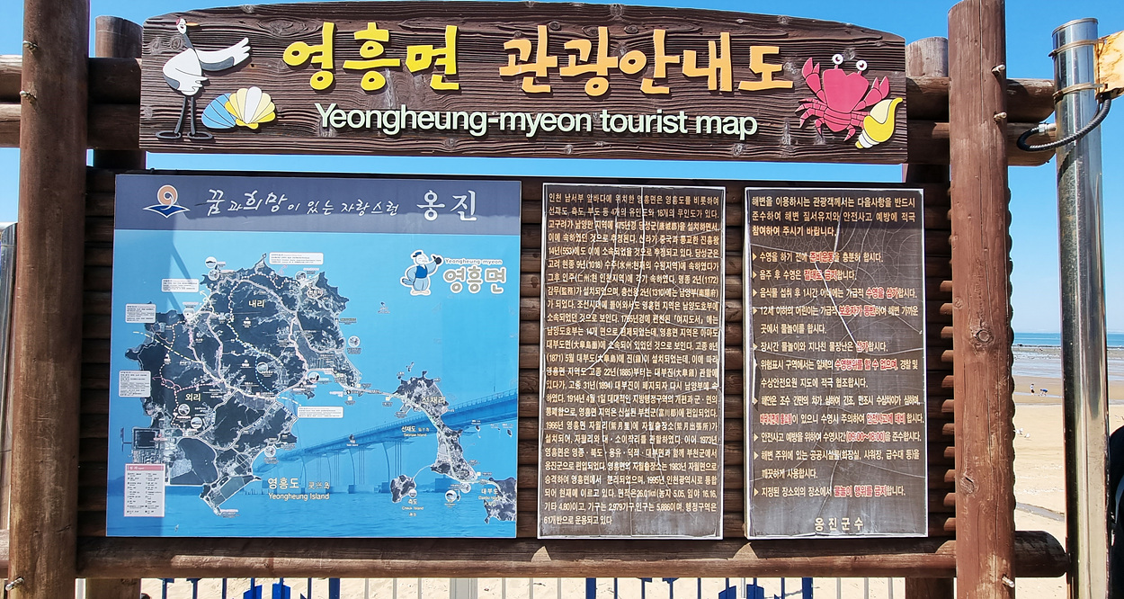 십리포 해변의 끝지점에 있는 영흥면 관광안내도 에는