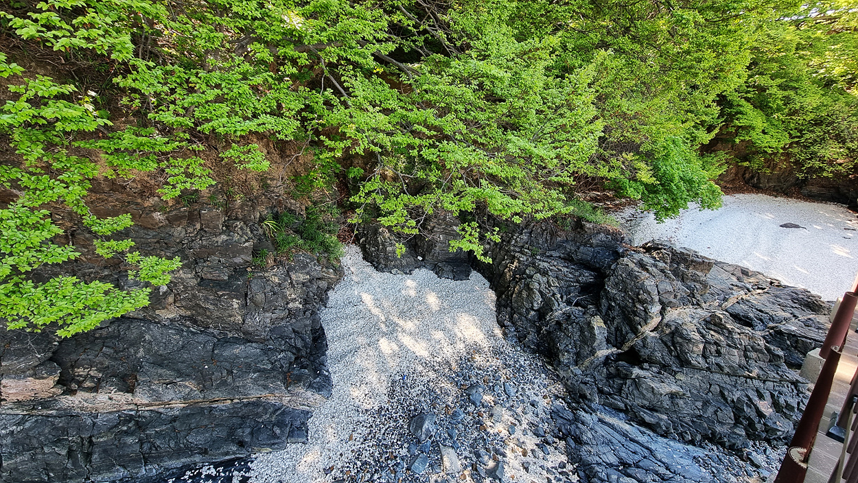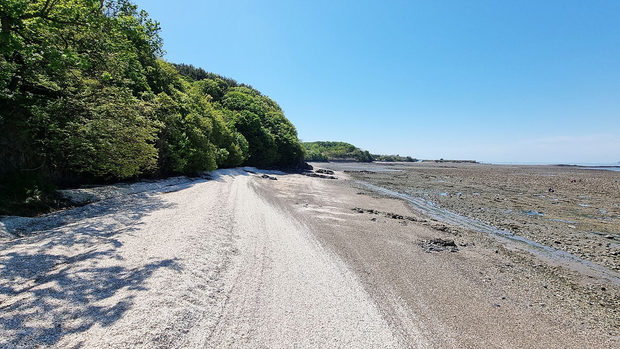 잘게 부셔진 조개 껍질이 해변을 이루고 있는 이곳 부터는