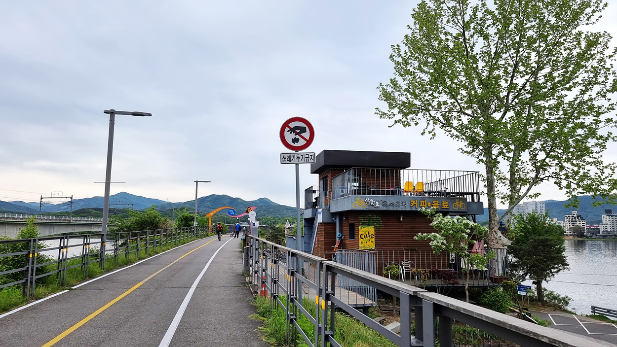 철교가 끝나는 지점이자 갈림길인 이곳에도 카페가 있다,